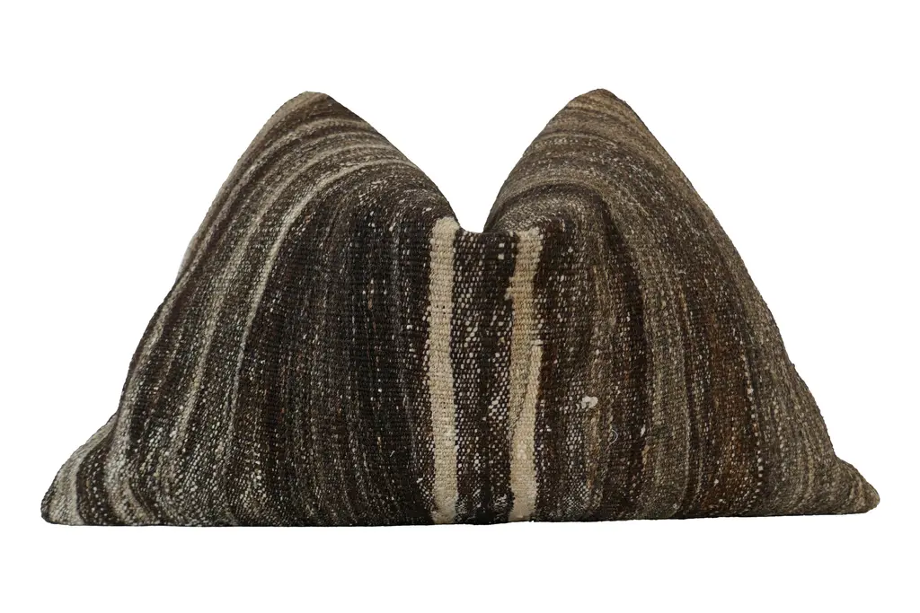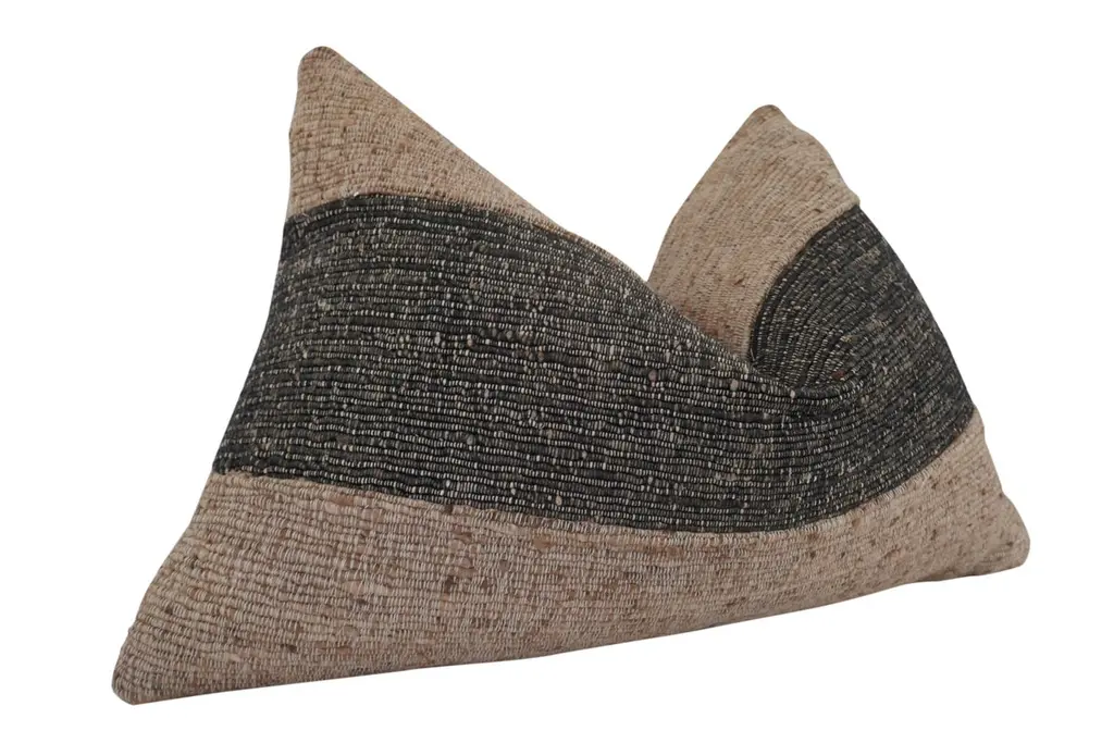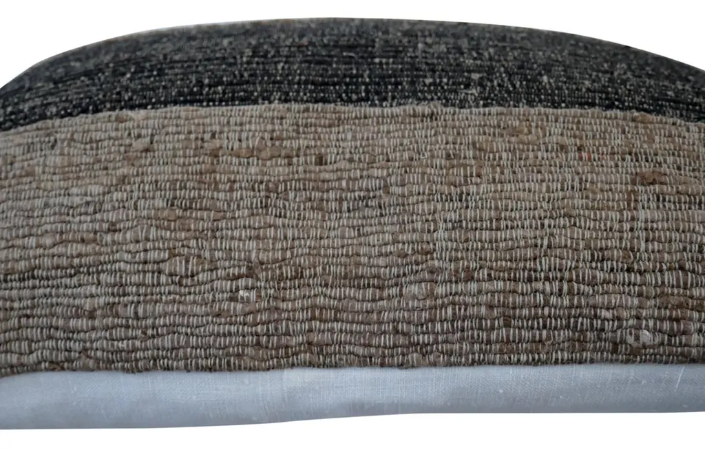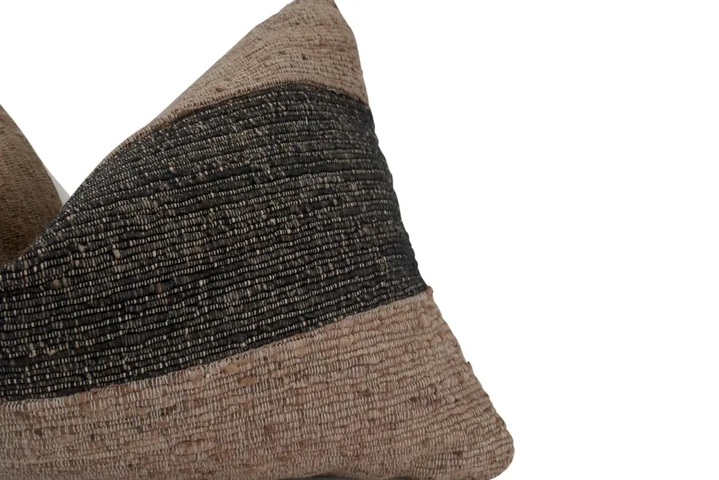 Our new "Art of Textile Collection" of authentic ultra-luxe select Global mix textiles. Impeccably designed and made from Italian loomed heavy textural raw rolled silk in variegated camel and charcoal color-way. Complemented with our premium neutral parchment white linen reverse side. Ultra-Plump down-and-feather insert, zipper closure and full muslin lining.Created by Fragments Identity in sunny California!