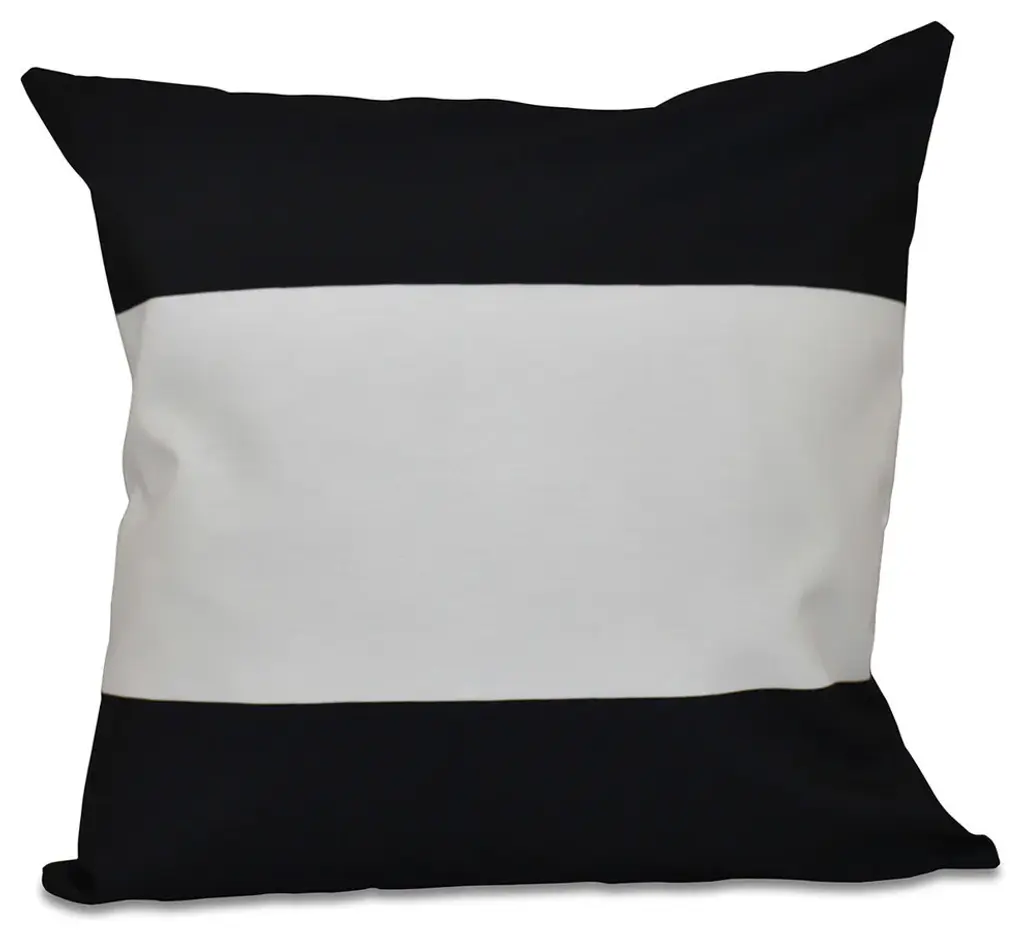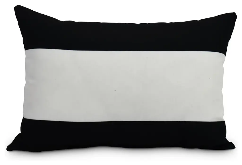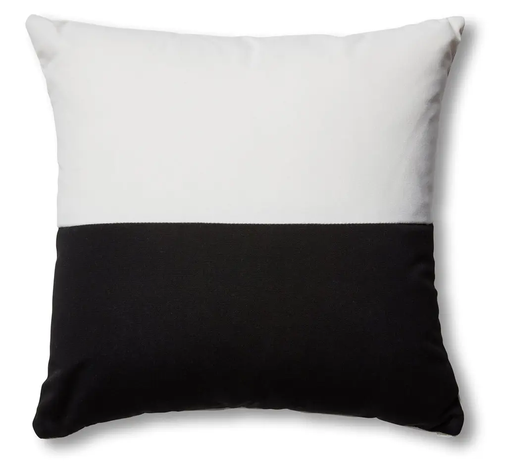 Designed by us and available only at One Kings Lane: The perfect complement to your outdoor furniture, this color-blocked pillow is made from durable Sunbrella--an easy-to-clean, solution-dyed acrylic fabric that retains its brilliance season after season. It's also mold-resistant and soil-resistant, making this pillow ideal for the porch, patio, or poolside. Solid white back. All-weather insert included.