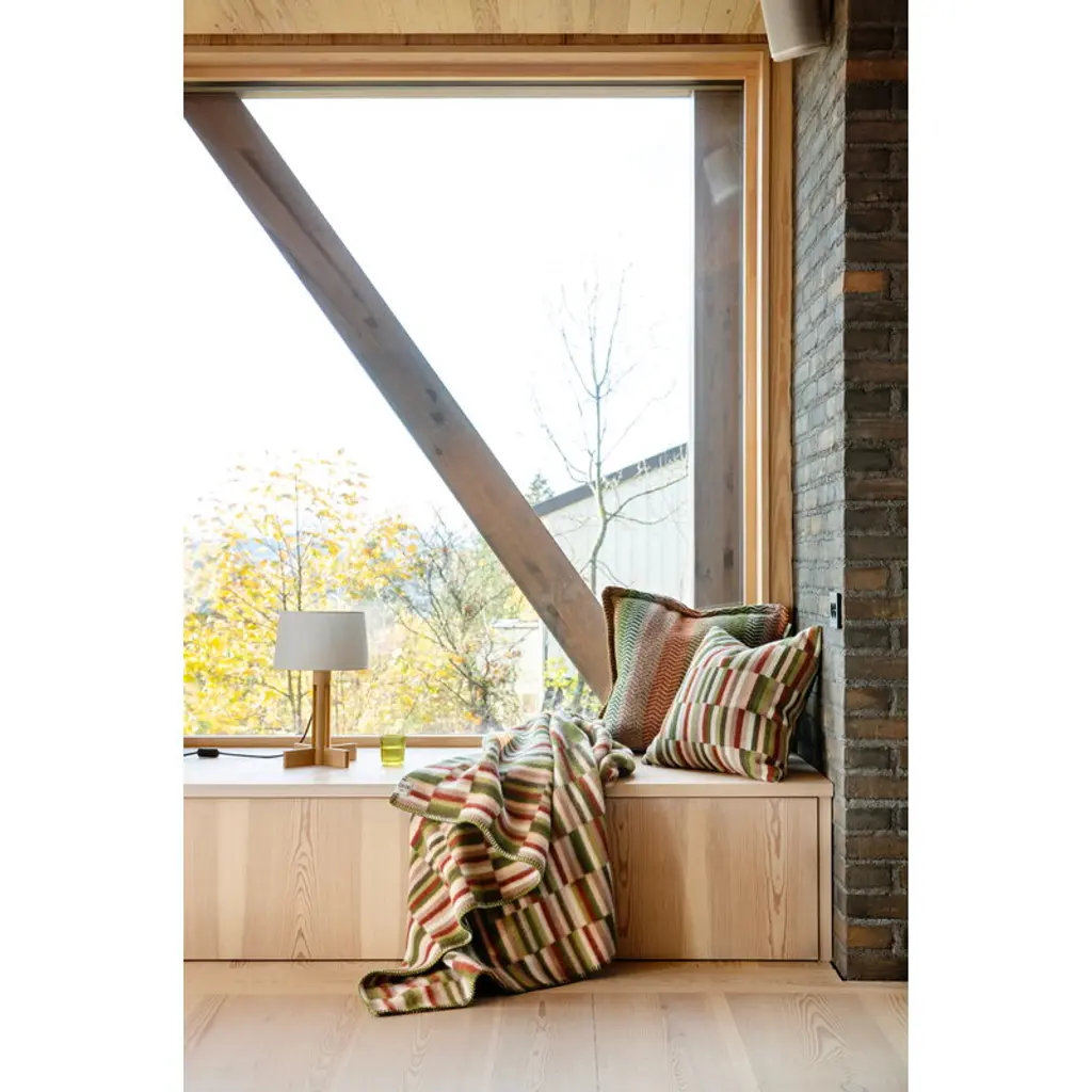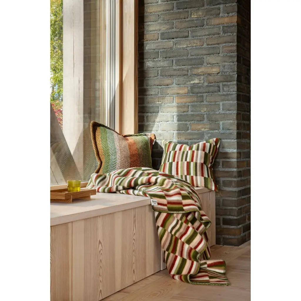 Røros Tweed's Fri cushion is just the ticket for all those seeking cozy, top-quality Scandinavian textiles. With the Fri series, designers Torbjørn Anderssen and Espen Voll set out to reinterpret the look of traditional table cloths, referred to as løpere in Norwegian. The design duo re-envisioned the repetitive color pattern typical of the original design and established a zigzag motif. With its soft visual effect, Røros Tweed's Fri cushion draws you in to feel its pleasant surface. High-quality home textiles by the Norwegian Røros Tweed are made from 100% Norwegian lambswool, shorn from sheep living free in the mountains. The manufacturing process is also kept fully in Norway to maintain high standards, which have been essential to the company's continued success since the 1940s.