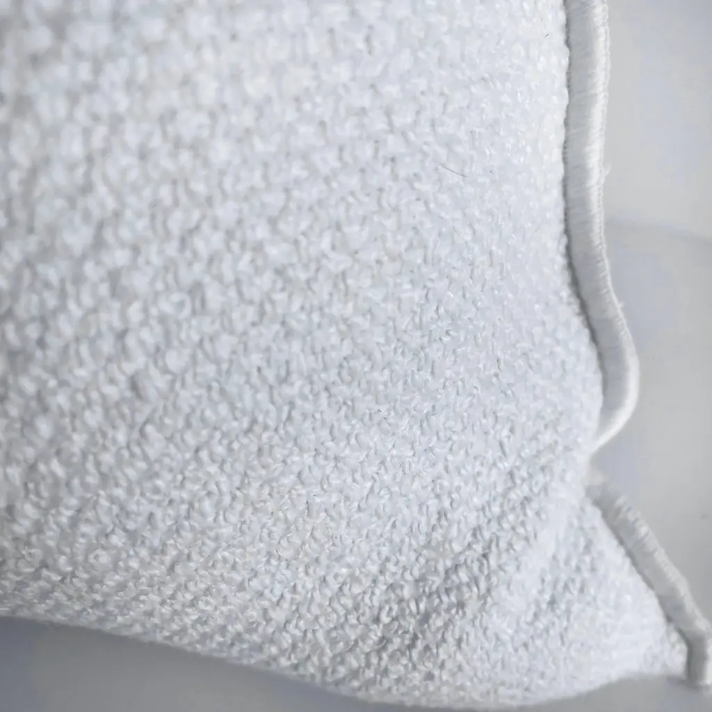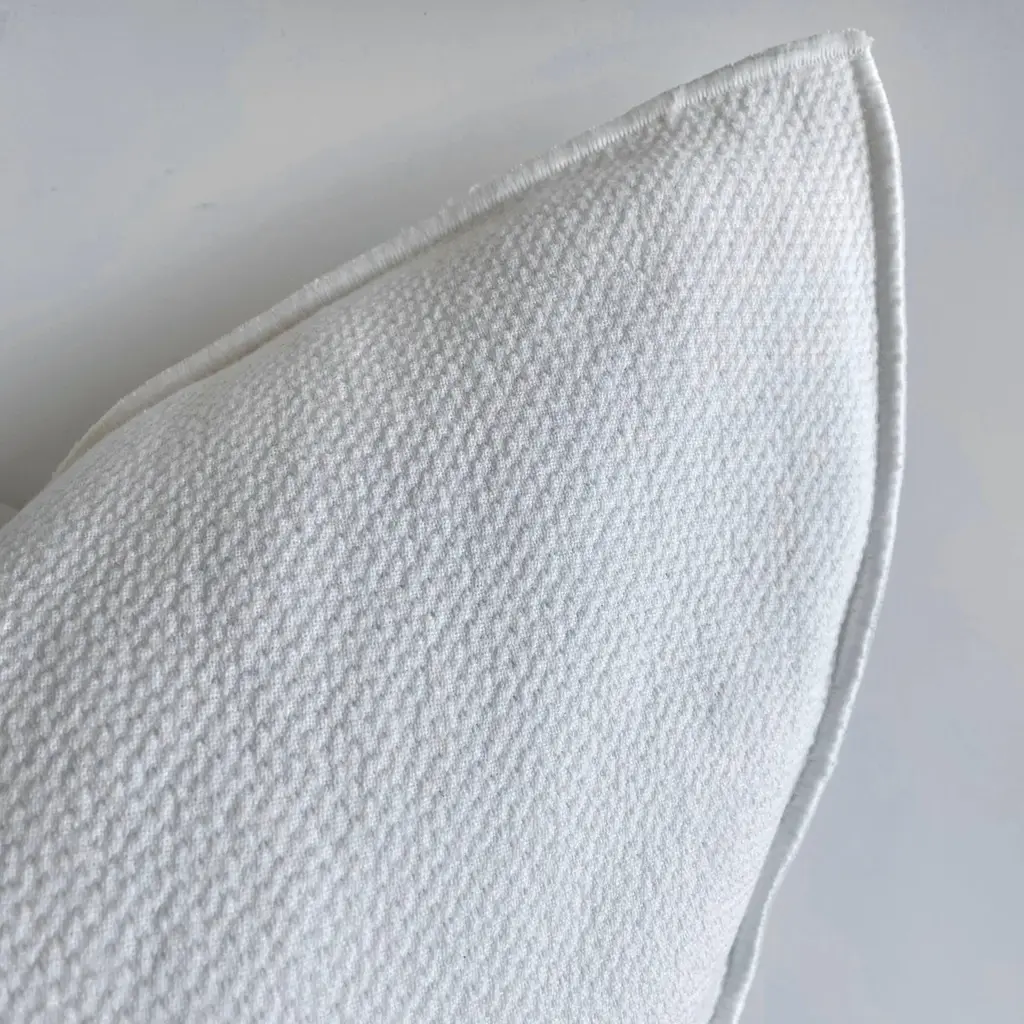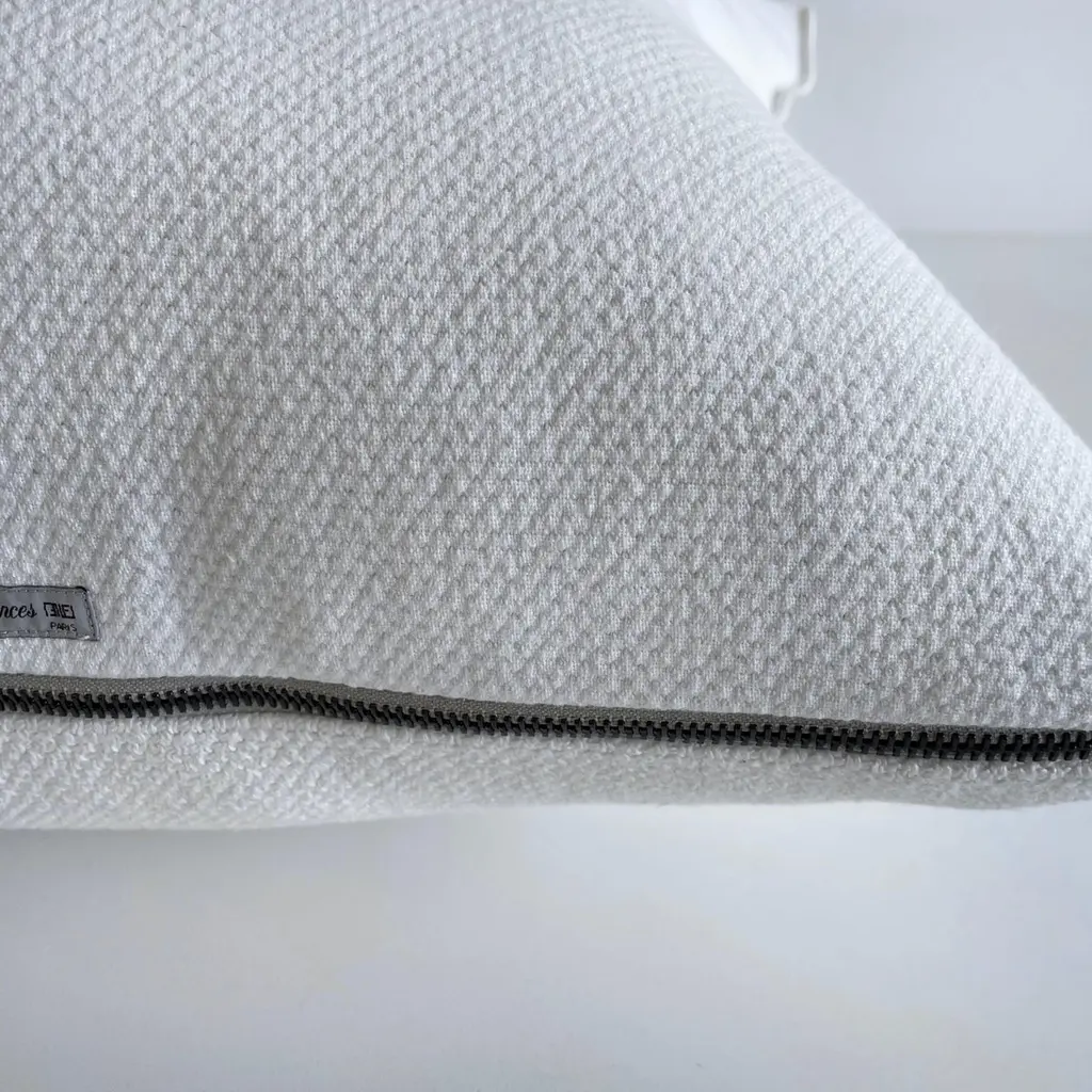 French linen white accent pillow. Metal zipper closure. Content: 50% linen, 24% cotton, 15% bamboo, 11% nylon. Includes insert. Size: 20" x 20".