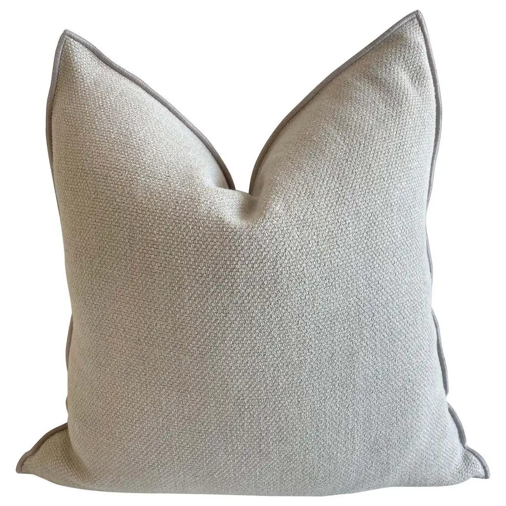 French linen light gray accent pillow. Metal zipper closure. Content: 50% linen, 24% cotton, 15% bamboo, 11% nylon. If this item is backordered please allow 6-8 weeks for production. Size: 20" x 20". Color: Ciment. Dimensions Height: 20 in. (50.8 cm) Width: 20 in. (50.8 cm) Depth: 5 in. (12.7 cm) Materials and Techniques Linen Period 21st Century Date of Manufacture 21st Century Production Type New & Custom (One of a Kind) Estimated Production Time Available Now
