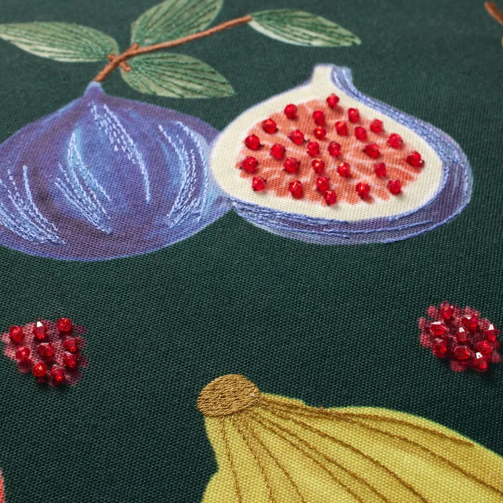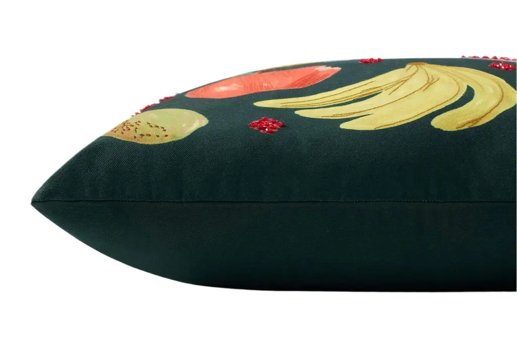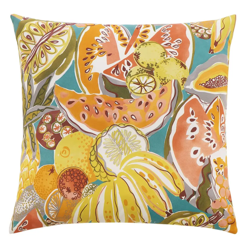 The Fruit Stand Pillow features a playful design with colorful fruit illustrations set against a soft background. This cheerful and vibrant pillow adds a fun, fresh touch to any space, making it a delightful accent for kitchens or casual living areas.