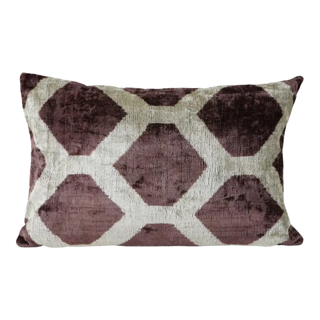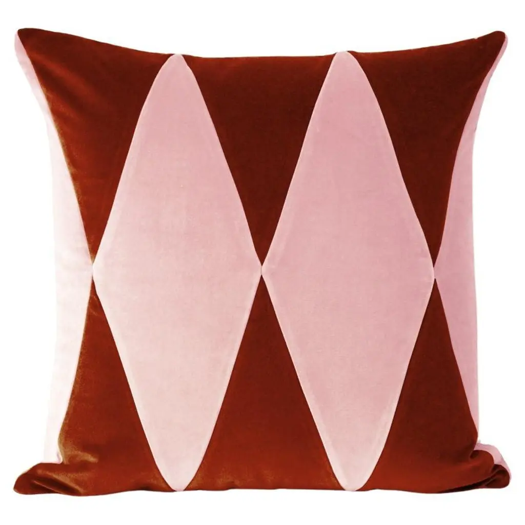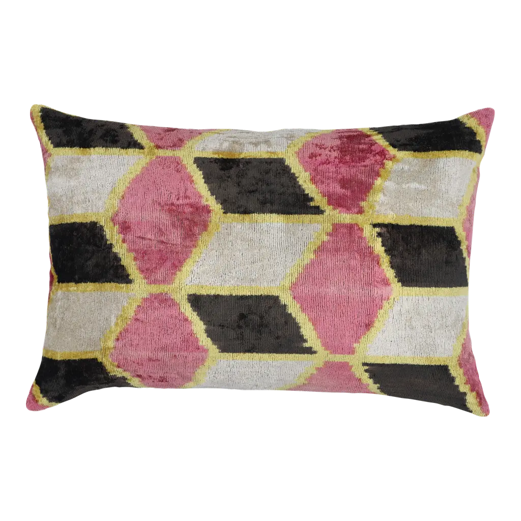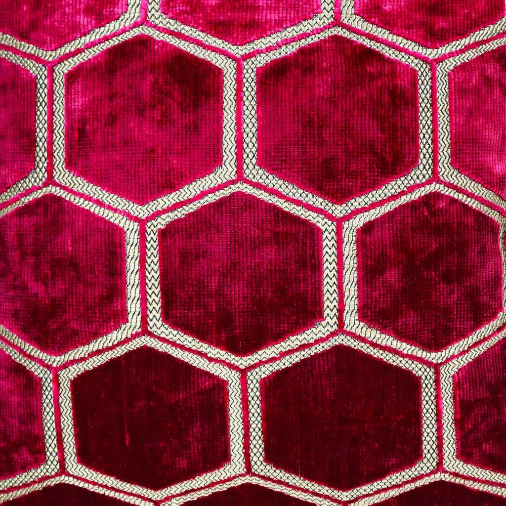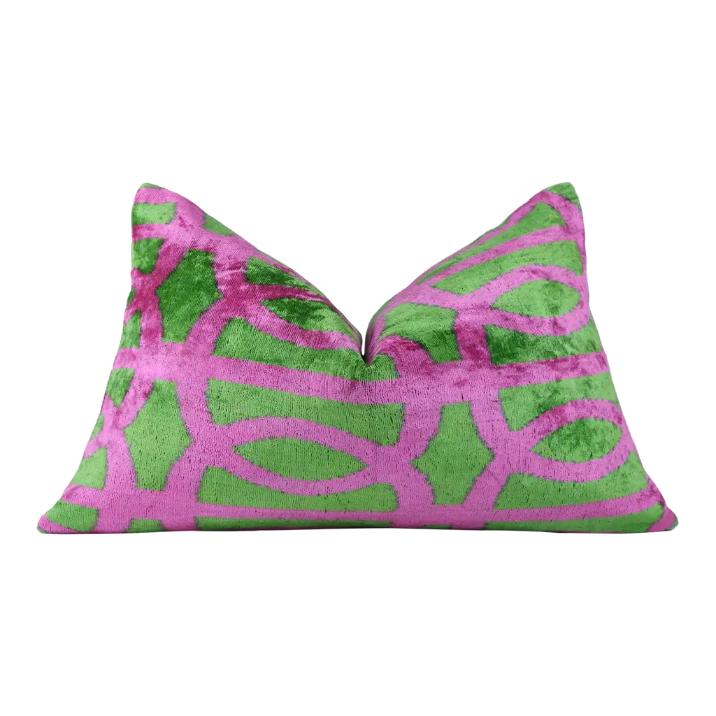 Fuchsia Hexagonal Cut Velvet Square Pillows With Chartreuse Sateen Back