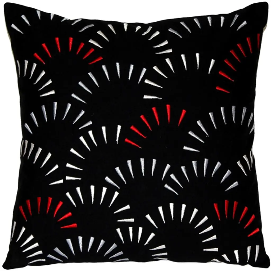 This striking cushion has a down insert with a cover in 100% cotton decorated using the pigment printing technique with a pattern of black fireworks over a white background.