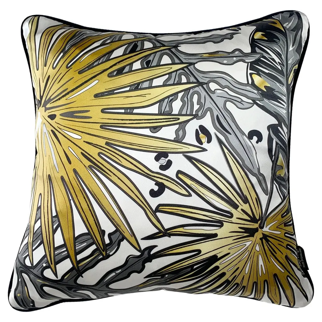This striking cushion has a down insert with a cover in 100% cotton decorated using the pigment printing technique with a pattern of vivid yellow and light grey fireworks.