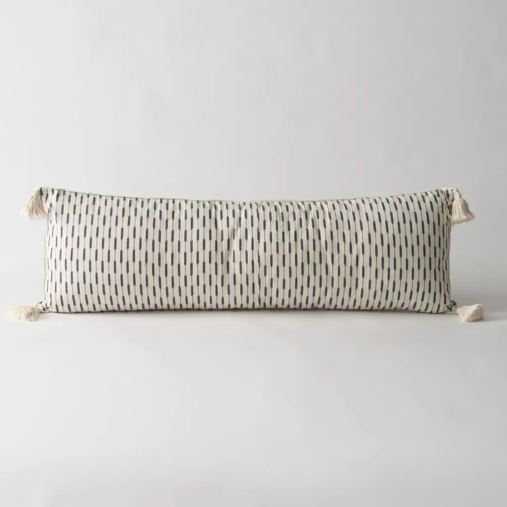 The soft cotton and Ikat pattern of our Gabi X-Large Bolster Pillow is sure to cozy up the bedroom. Finished with tassled corners.
