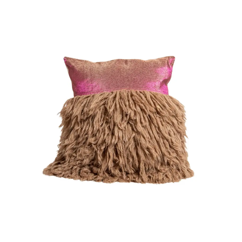 10x10" Handcrafted by expert knitters in Peru.Dress up a sofa and wow your guests with handcrafted excellence. The Wugo Pillow is as comfortable as it is beautiful. Enjoy the elite luxury of a durable, handcrafted pillow that will last you for years to come.This luxurious throw pillow is constructed using handwoven Silk Nigerian Aso Oke fabric and Peruvian Alpaca fringe. Make a statement in your home with this premium pillow fit for the king and queen in you.Pillow Insert Included