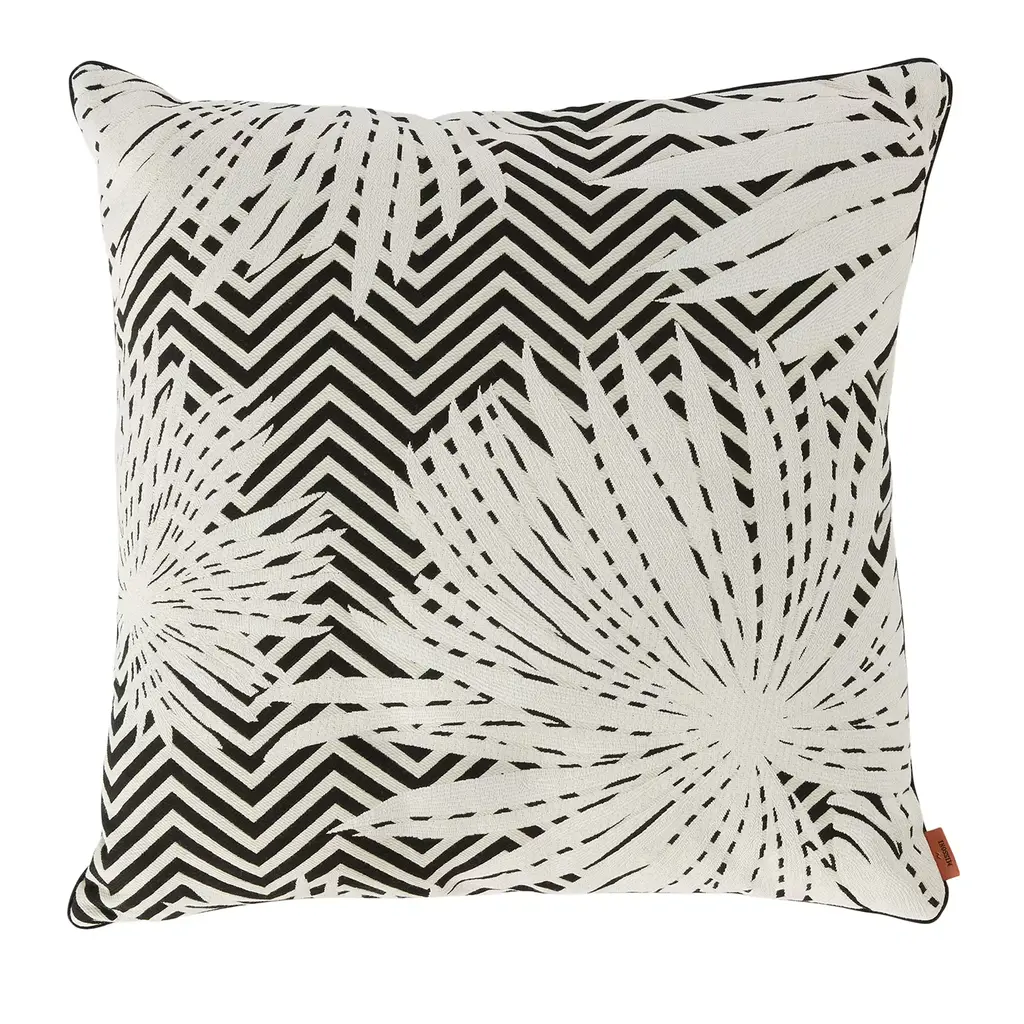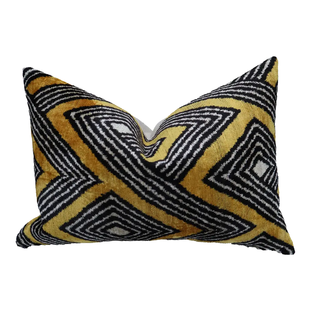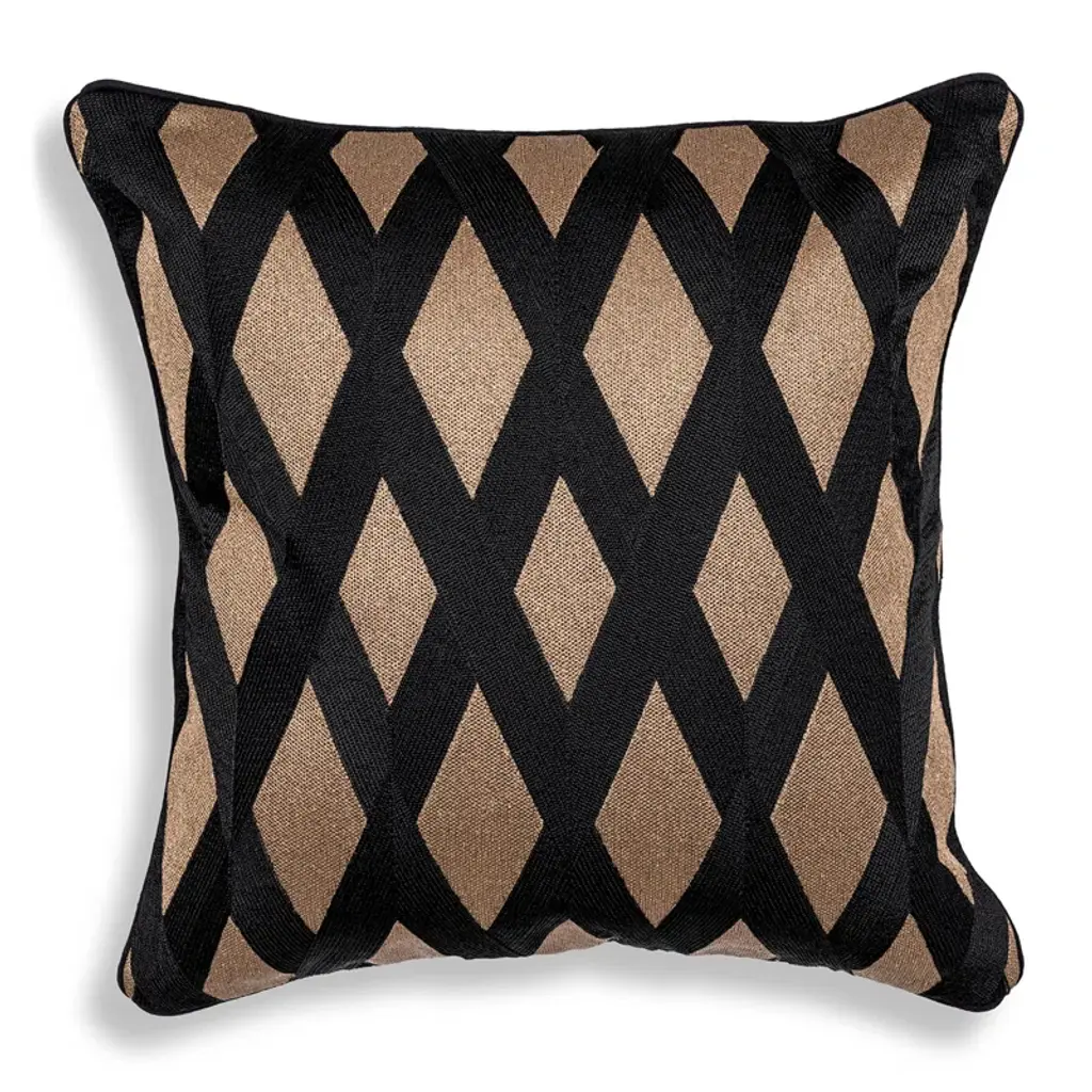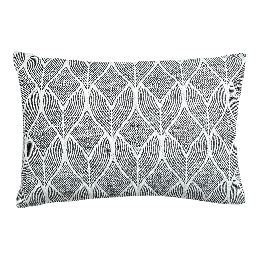 Custom-tailored pillow in designer Gaston Y Daniela "Hepburn Verde" geometric modern fabric. Green woven linen-cotton fabric back. Custom cord trim. Zipper closure. New plump goose down-and-feather insert. Excellent new, unused condition!!