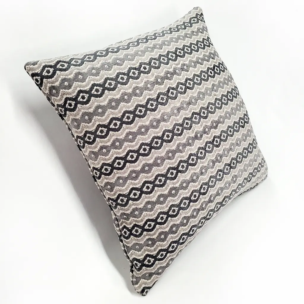 Three shades of gray and a touch of ivory are all it takes for this pillow to add a little quiet sophistication to your room. Made from quality fabric from Maxwell Fabrics, this soft chenille geometric pattern pillow would be right at home on an ivory or light ray sofa or chair. Add a touch of elegance to your home with the 17 inch square Gazing Foundry Gray Throw Pillow. Size: 17"x17" Square Fabric: 52% Polyester/35% Acrylic/6%Viscose Same fabric on front and back Made with Maxwell Fabric: GAZING FOUNDRY Knife edge seams. Inside seams are serged for strength and durability. Hidden zipper closure in bottom seam of pillow cover Dry Clean Made in Canada: Designed and made in Pillow Decor's Vancouver workroom.