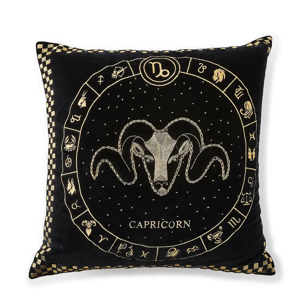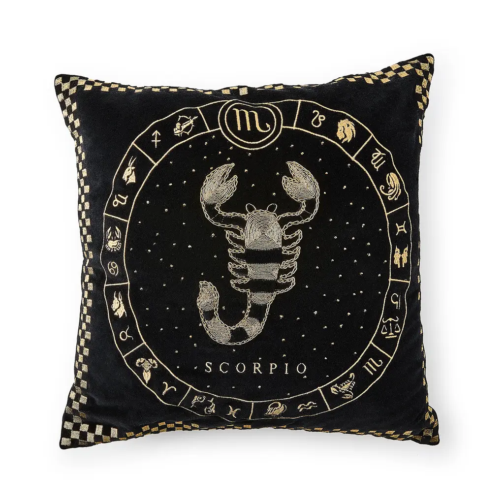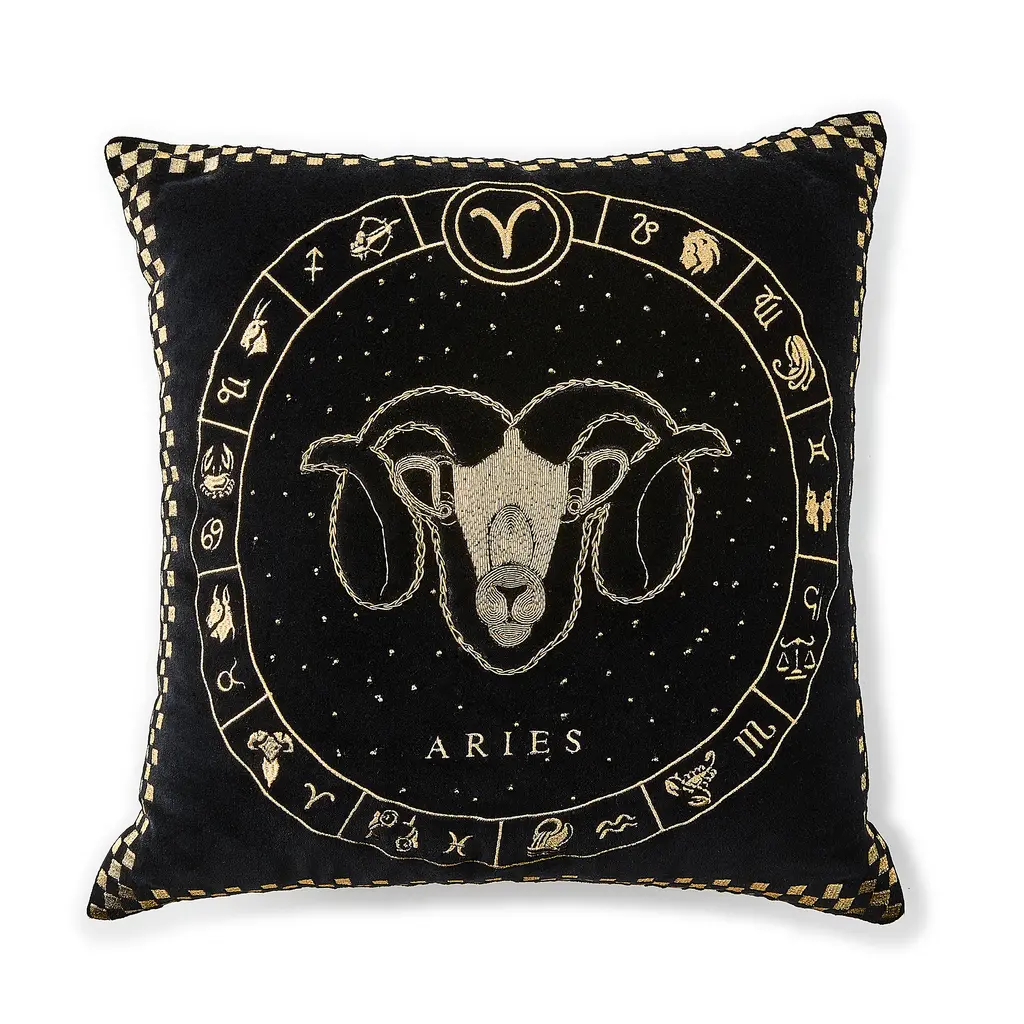 Show your star sign pride with this refined Gemini Zodiac Throw Pillow. Features an elegant embroidered symbol and typography, encircled by each of the star signs and finished with a check border. Crafted with traditional Zardozi hand-embroidery, which incorporates brilliant threads and embellishments to create beautifully intricate designs.