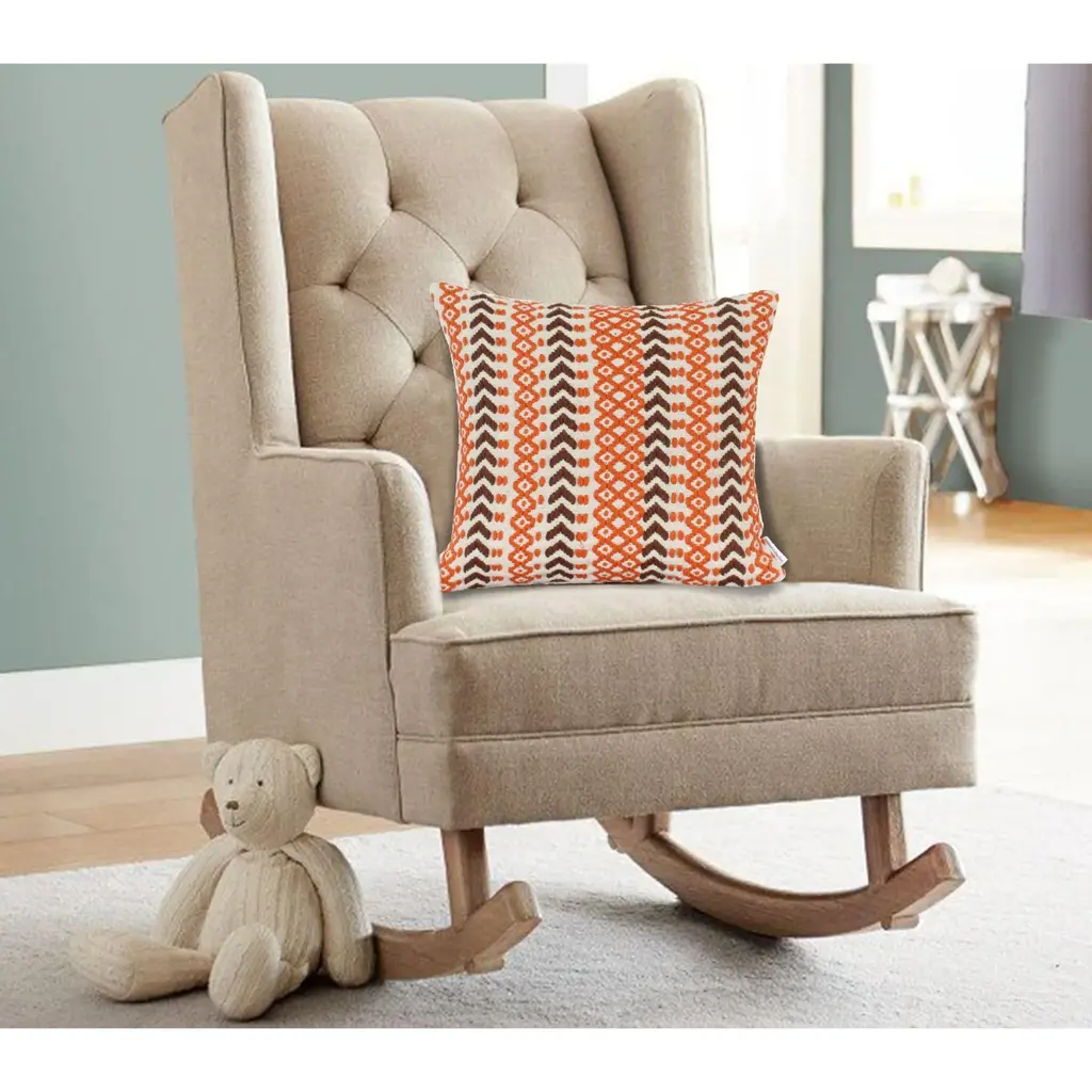 Geometric Embroidered Square Cotton Throw Pillow - 20" - Orange And Brown - Orange - 20 X 20