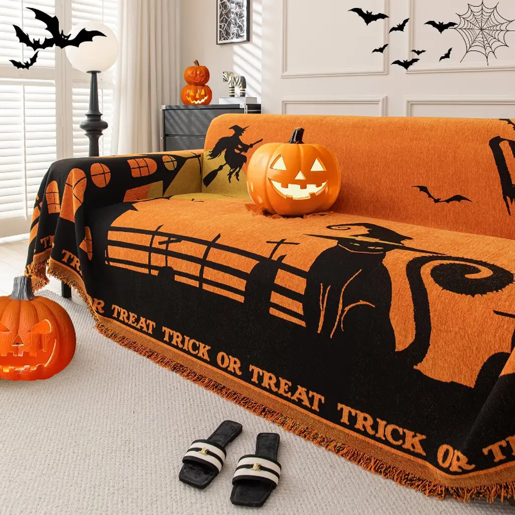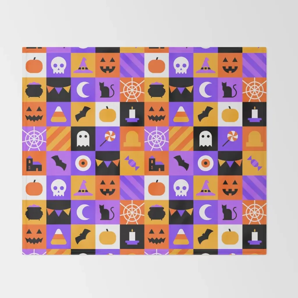 Geometric Halloween Mosaic Pattern Throw Blanket