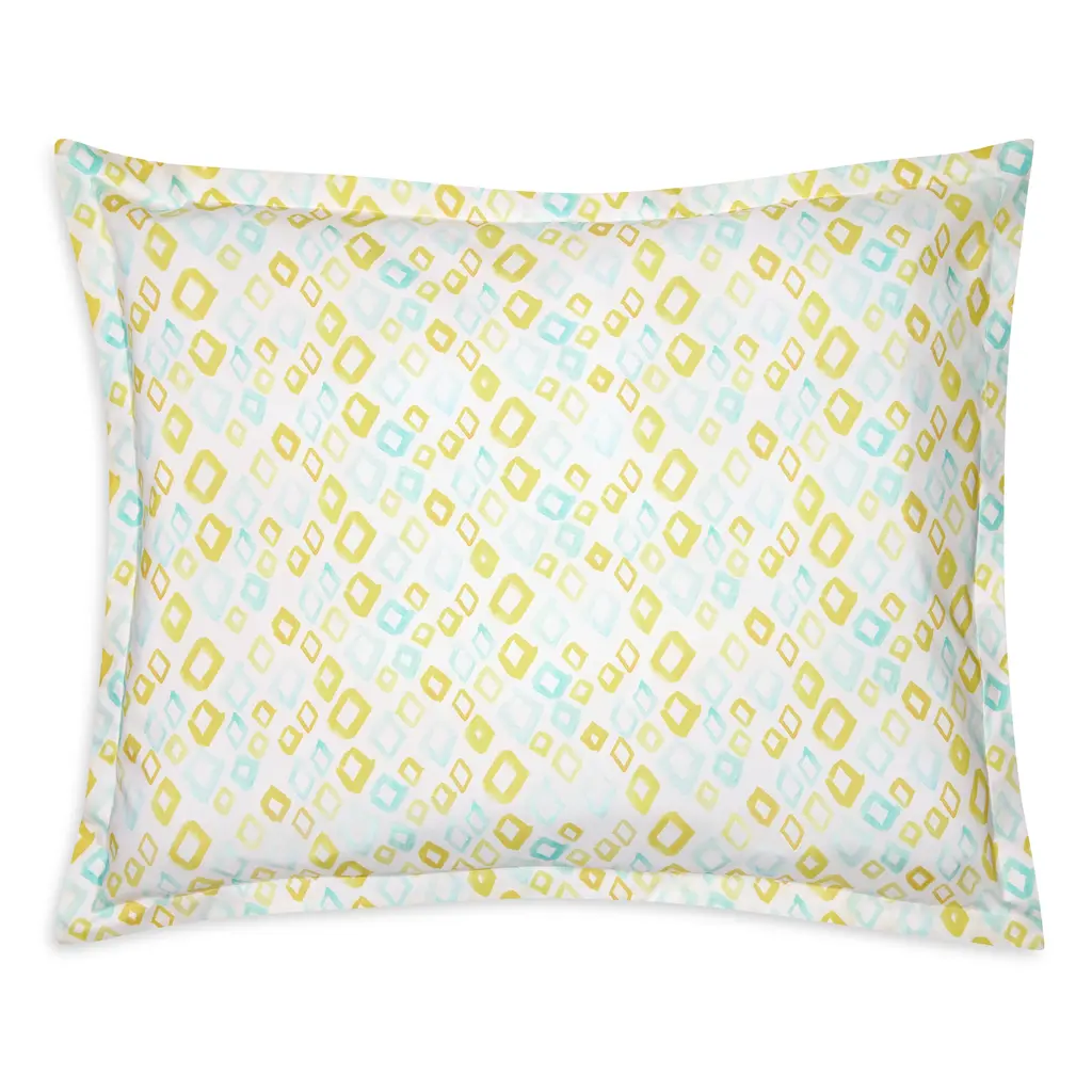 Whimsical and sophisticated in equal measure, the Geometrico collection is enlivened by yellow and aqua brushstrokes that form an all-over diamond pattern over a soft, white percale base. A satin-stitch double border of aqua, accented by yellow diamond details, imbues the matching Diamantini embroidery collection with sheer elegance. Founded in 1891, SFERRA is a celebrated Italian label that produces exquisite linens that grace some of the world's finest hotels and residences. Each luxurious item is woven by master craftspeople in family-owned mills in Northern Italy.