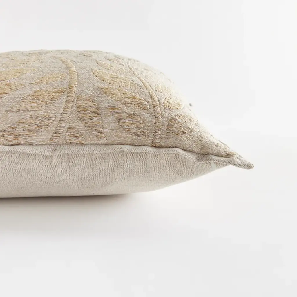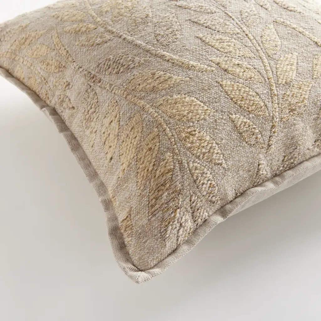 The outdoor pillow that lives beautifully indoors. Enjoy the upscale luxury and durability of Jacquard. With a tone-on-tone vine pattern, it plays well with any palette. This pillow is weather resistant and responsibly made. Filled with 100% recycled fibers.