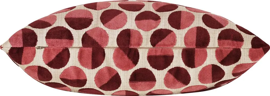Exclusive to One Kings Lane: Colored circles are stitched atop the canvas fabric on both sides of this throw pillow, adding texture and mod panache. Made in the USA, the pillow is amply filled with plume feathers for sumptuous loftiness. Hidden zipper closure.