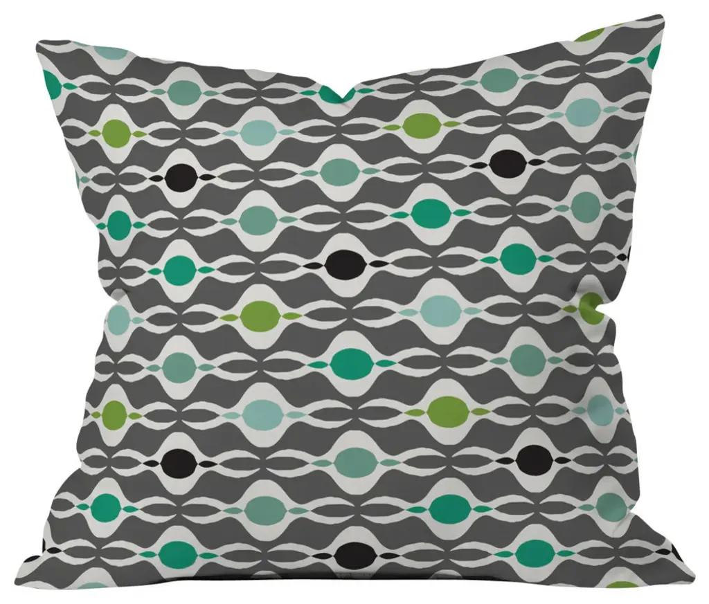 Exclusive to One Kings Lane: Colored circles are stitched atop the canvas fabric on both sides of this throw pillow, adding texture and mod panache. Made in the USA, the pillow is amply filled with plume feathers for sumptuous loftiness. Hidden zipper closure.