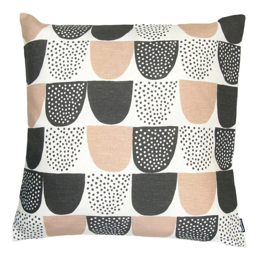 Exclusive to One Kings Lane: Colored circles are stitched atop the canvas fabric on both sides of this throw pillow, adding texture and mod panache. Made in the USA, the pillow is amply filled with plume feathers for sumptuous loftiness. Hidden zipper closure.