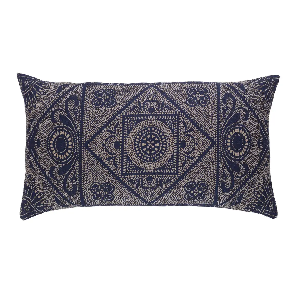 Gilded Star Block Print Pillow In Navy On Natural, 20"