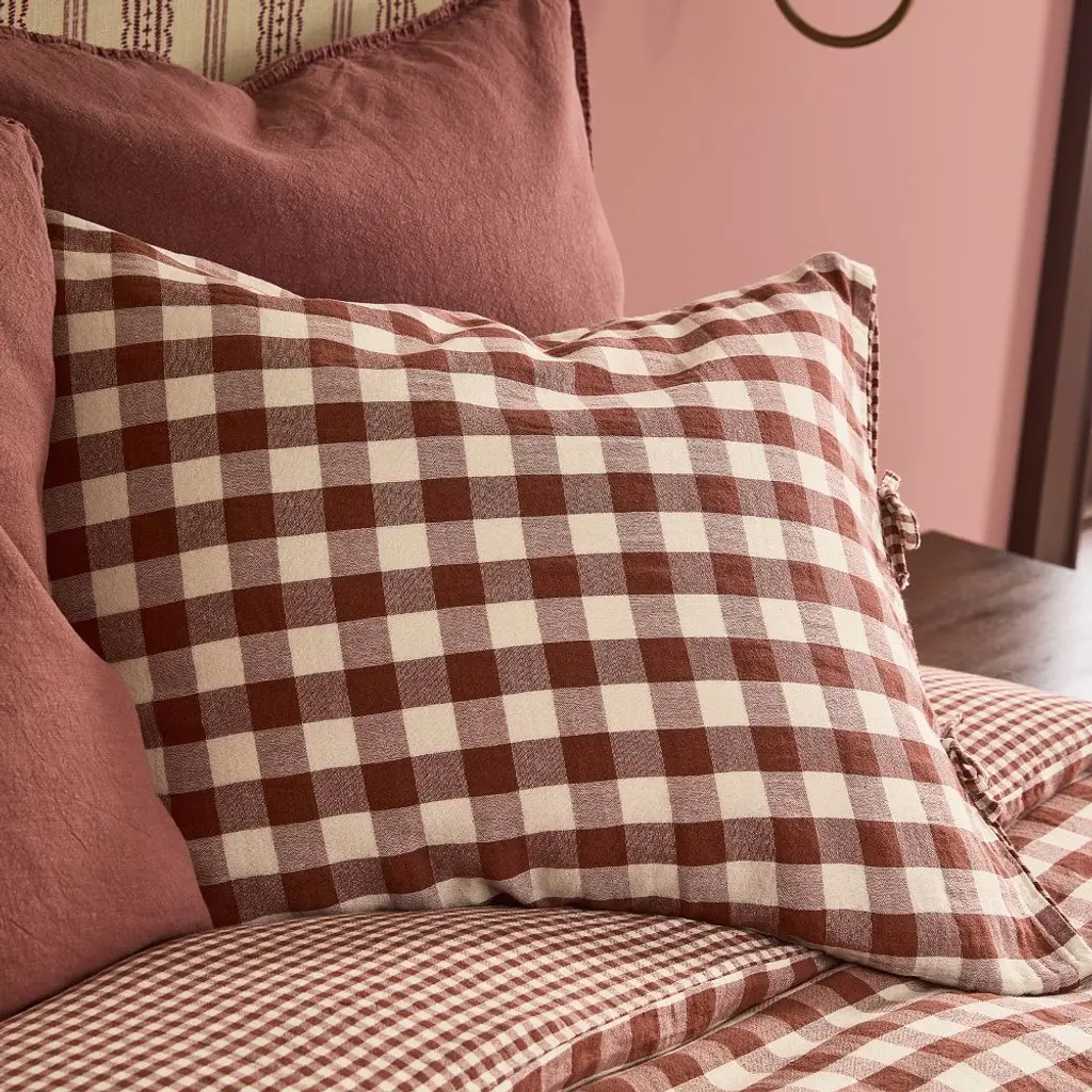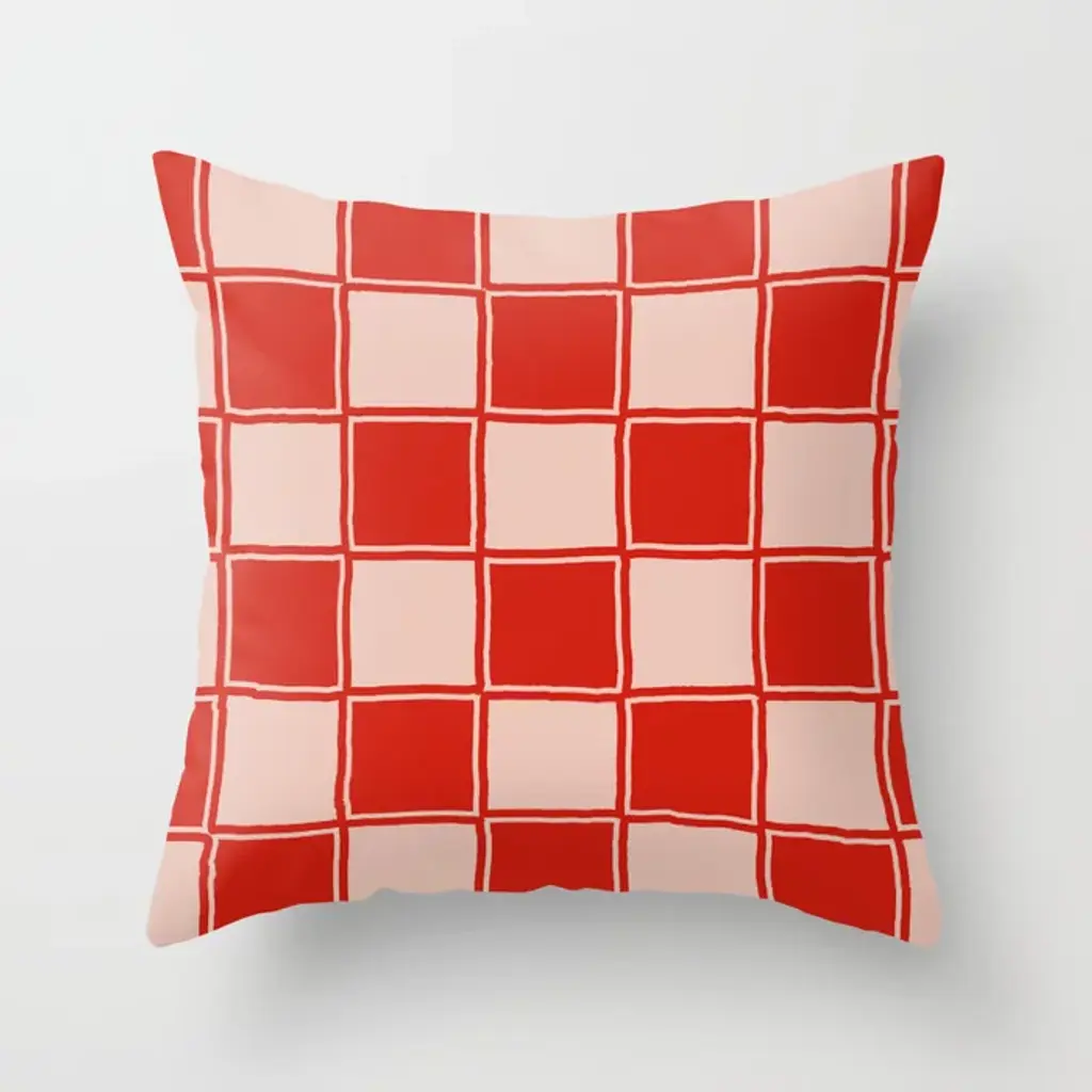 Gingham Check Geometric Print Pillow, Passion Flower, 16"x16"