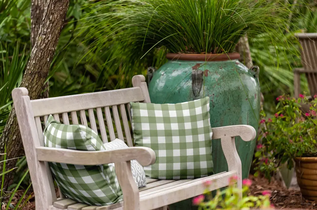 Gingham Plaid Indoor/outdoor Throw Pillow, Scallion, 18"x18"