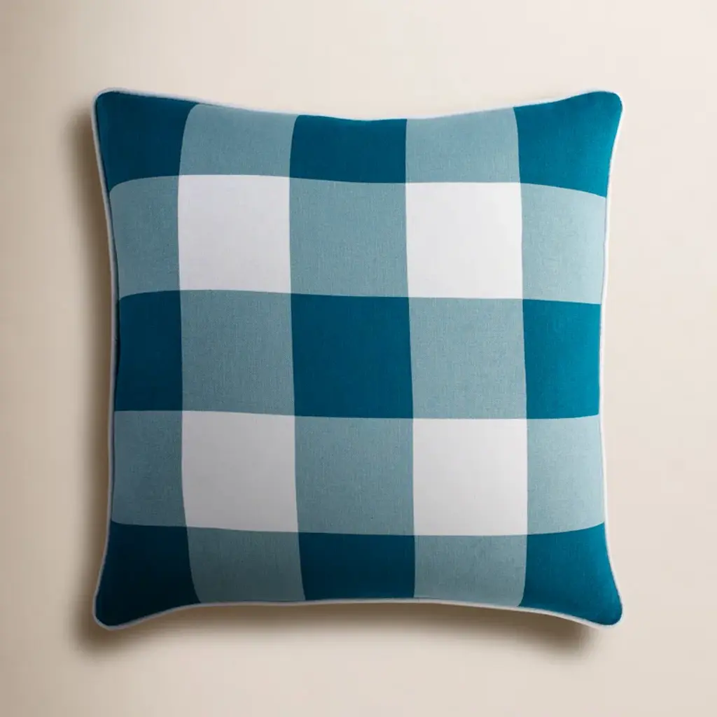 Gingham Plaid Indoor/outdoor Throw Pillow, Unreal Teal, 18"x18"