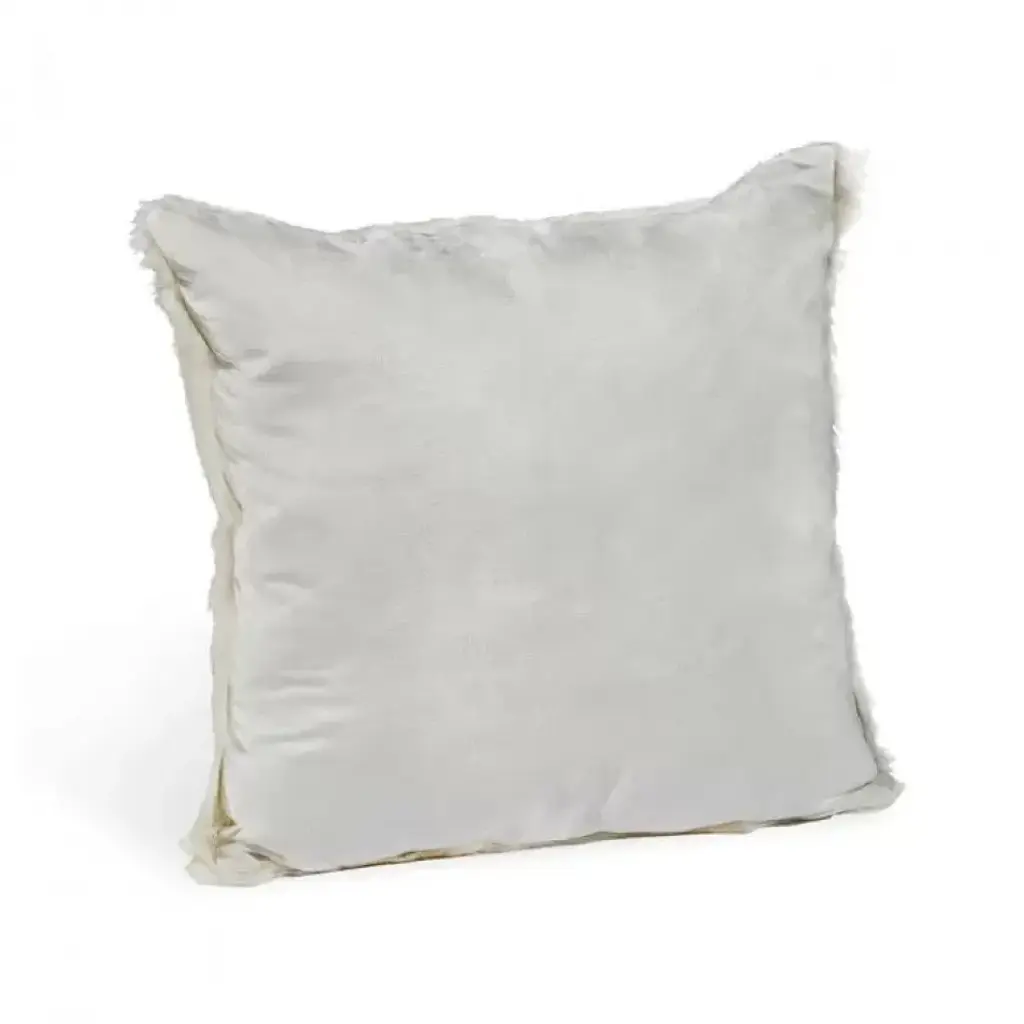 Delivering stunning sophistication, the ivory Goatskin Square Pillow is the perfect accent to take a space to next-level glamour. This item is genuine goat skin. Subtle variations in coloration are to be expected and add to the uniqueness and charm of each piece.