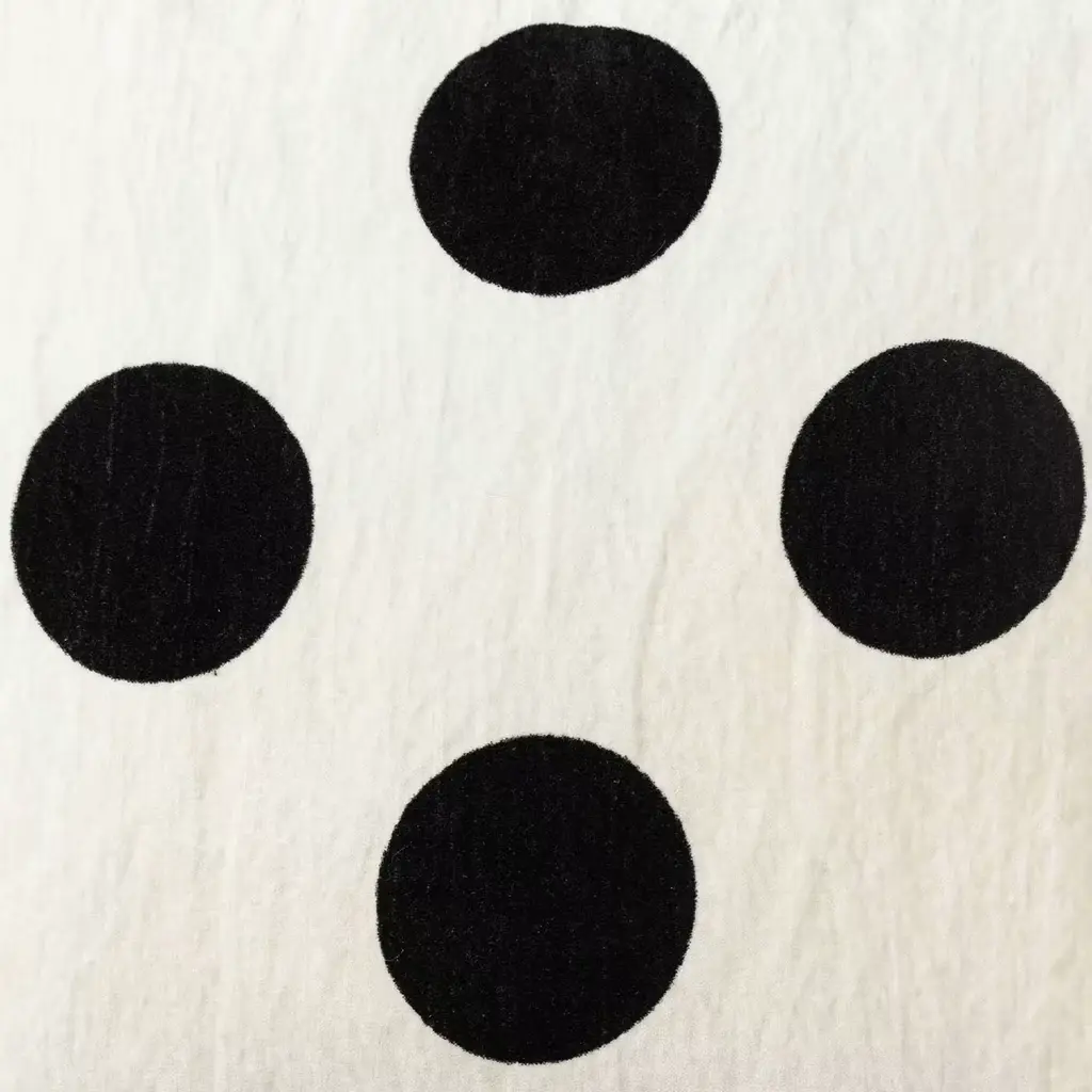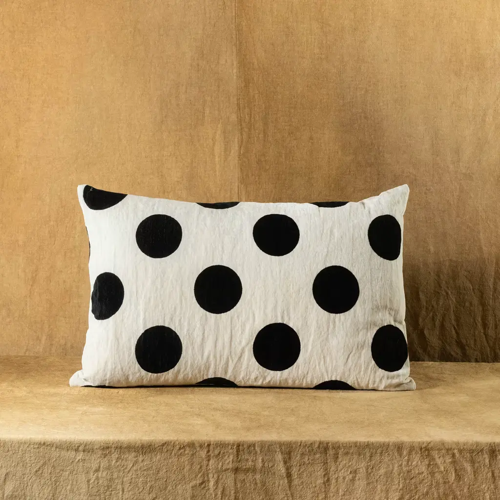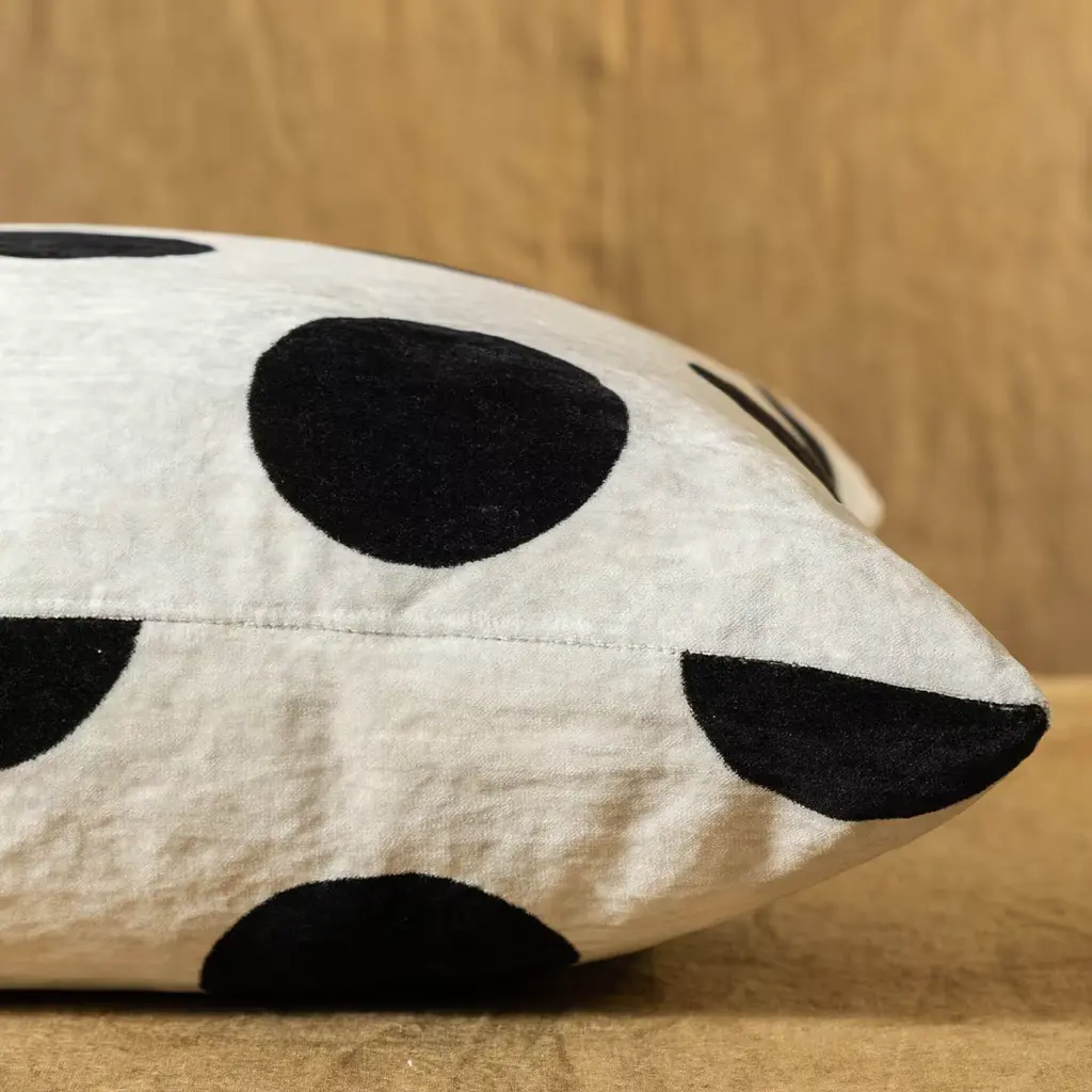 Fine cotton and velvet are cleverly combined in this soft rectangular cushion, echoing a clear vintage inspiration. Offered in a timeless black-and-white version, the printed polka-dot pattern lends the fresh cover a glamorous allure that suggests the cushion as an ideal addition to accent beds or sofas with a dash of extra style.