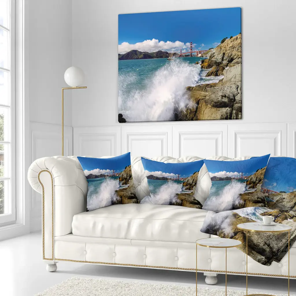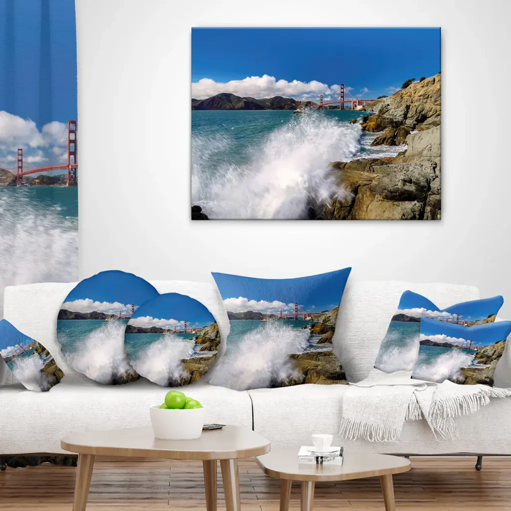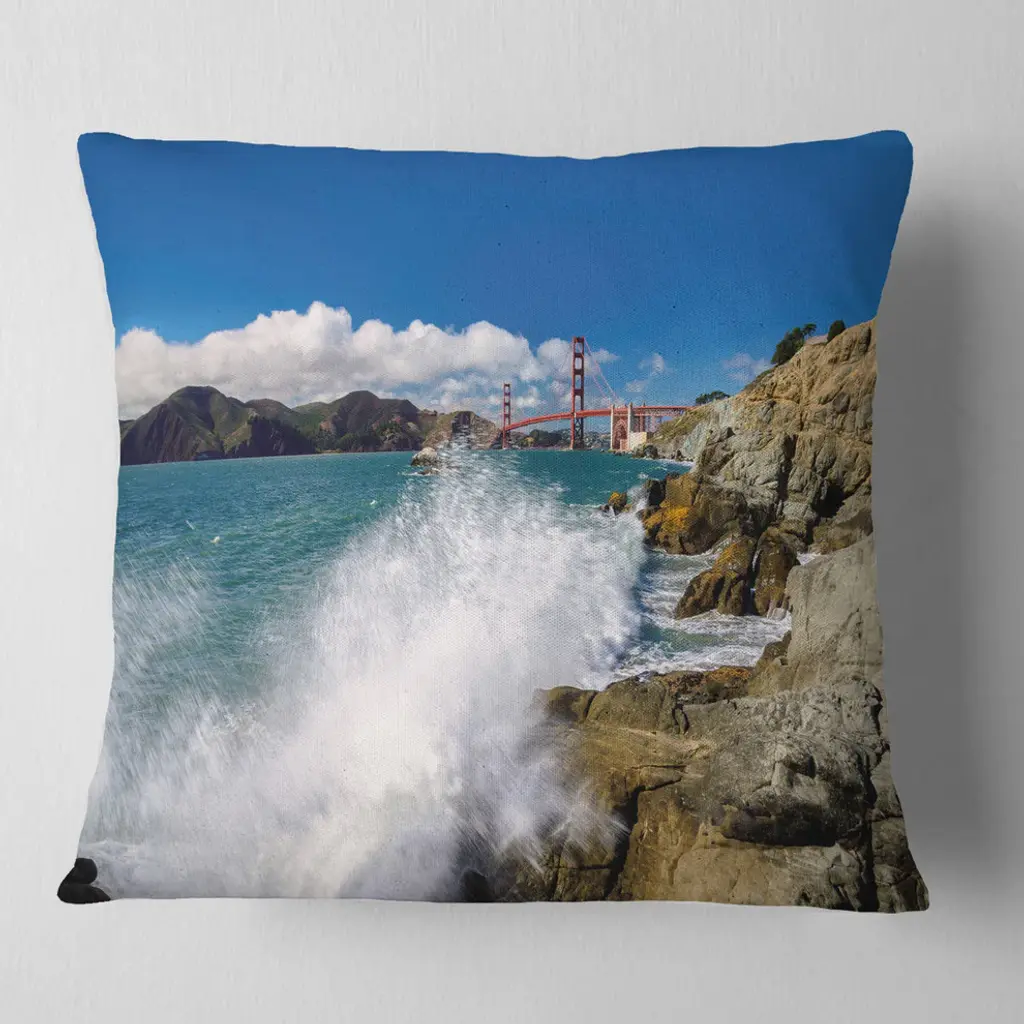 Golden Gate Bridge In San Francisco Seashore Throw Pillow, 16"x16"