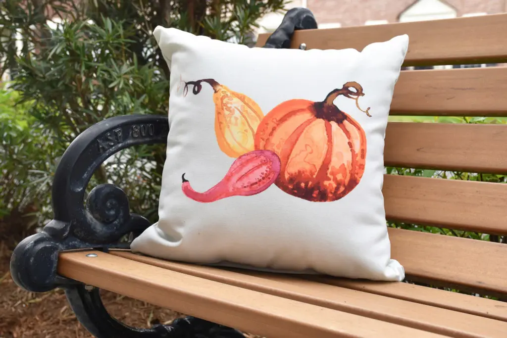 Gourd Pile Fall Print Outdoor Decorative Throw Pillow, Light Green, 16"