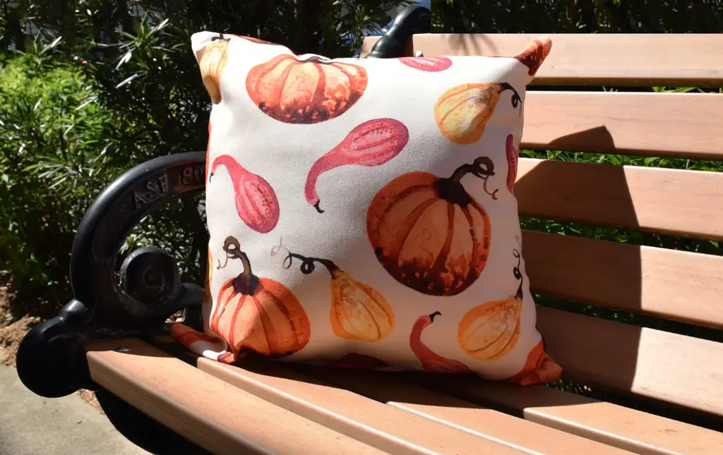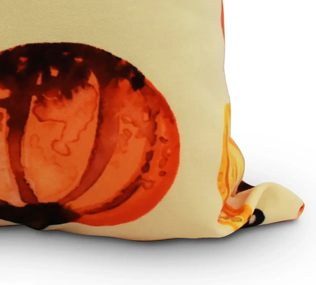 Gourds Galore Fall Print Outdoor Decorative Throw Pillow, Light Yellow, 16"