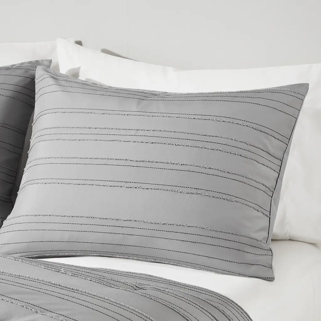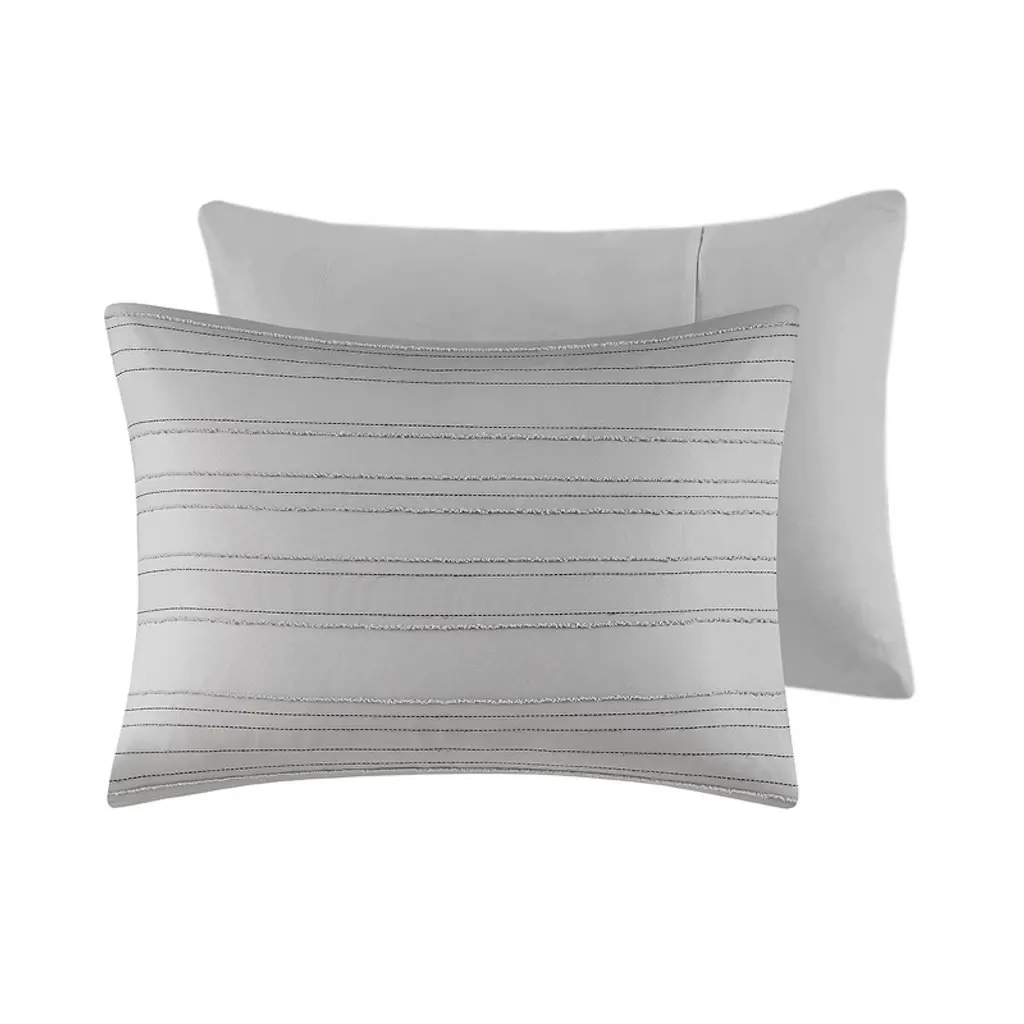 Infuse your bedroom with a casual and contemporary vibe using the Gracie Mills Lucia Dyed Clip Jacquard Comforter Set with Throw Pillow. The comforter and matching shams (1 in Twin/Twin XL) showcase a woven striped pattern and clip jacquard design, offering a modern twist to your bedroom decor. Completing the bedding set is a coordinating square decorative pillow. The hypoallergenic polyester filling ensures a comfortable sleeping experience, free from allergens and dust. Additionally, this comforter set is OEKO-TEX certified and conveniently machine washable for effortless care.