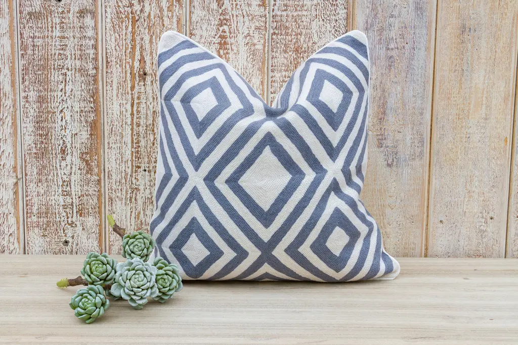 Vibrant and stunning pillows are hand-embroidered by artisans from Himalayas. Exquisite wool thread, chain stitch hand-embroidery covers every inch of the base cotton canvas fabric. Down insert include.