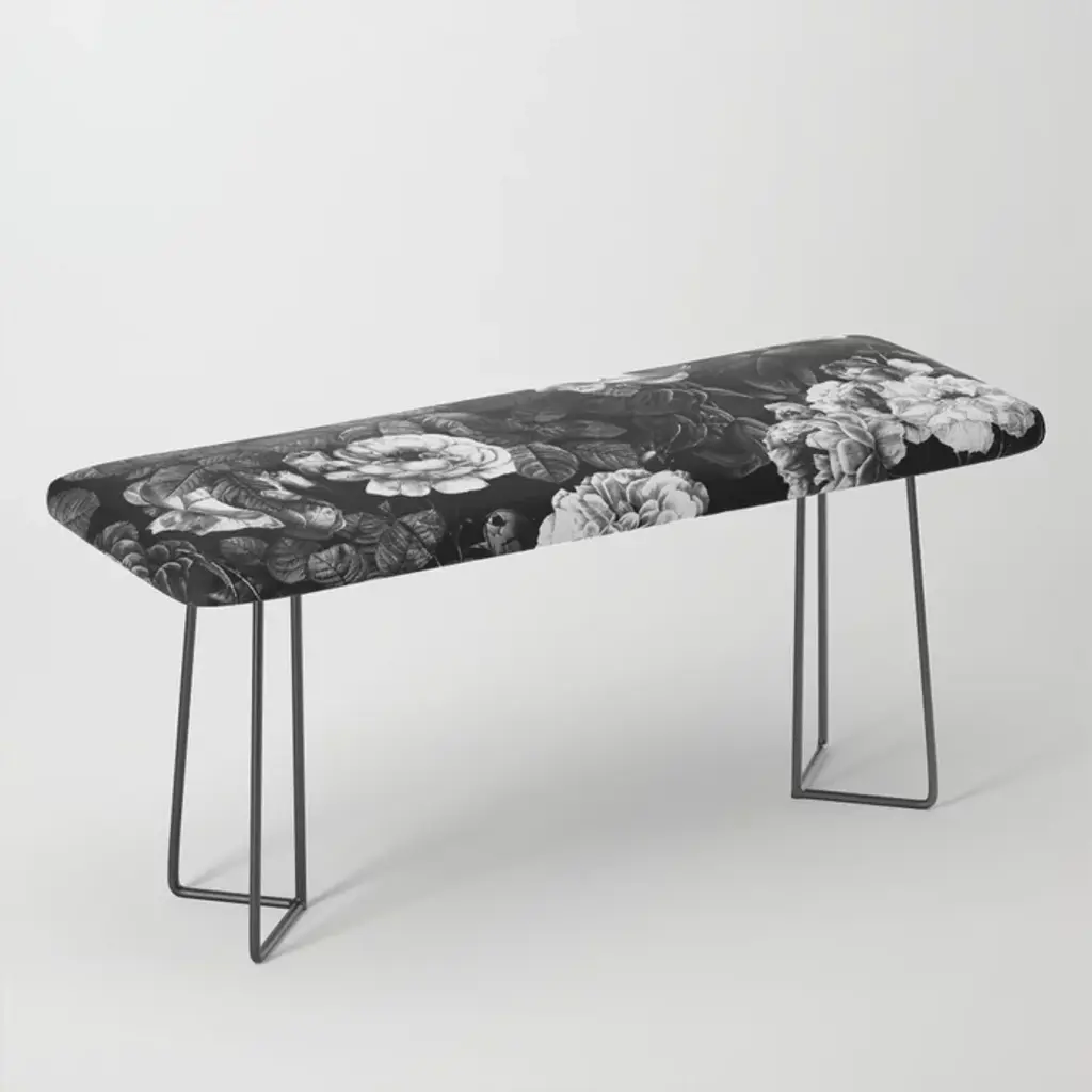 Gray, Black, Cream, Yellow & Red Sophisticated Floral Pattern Bench