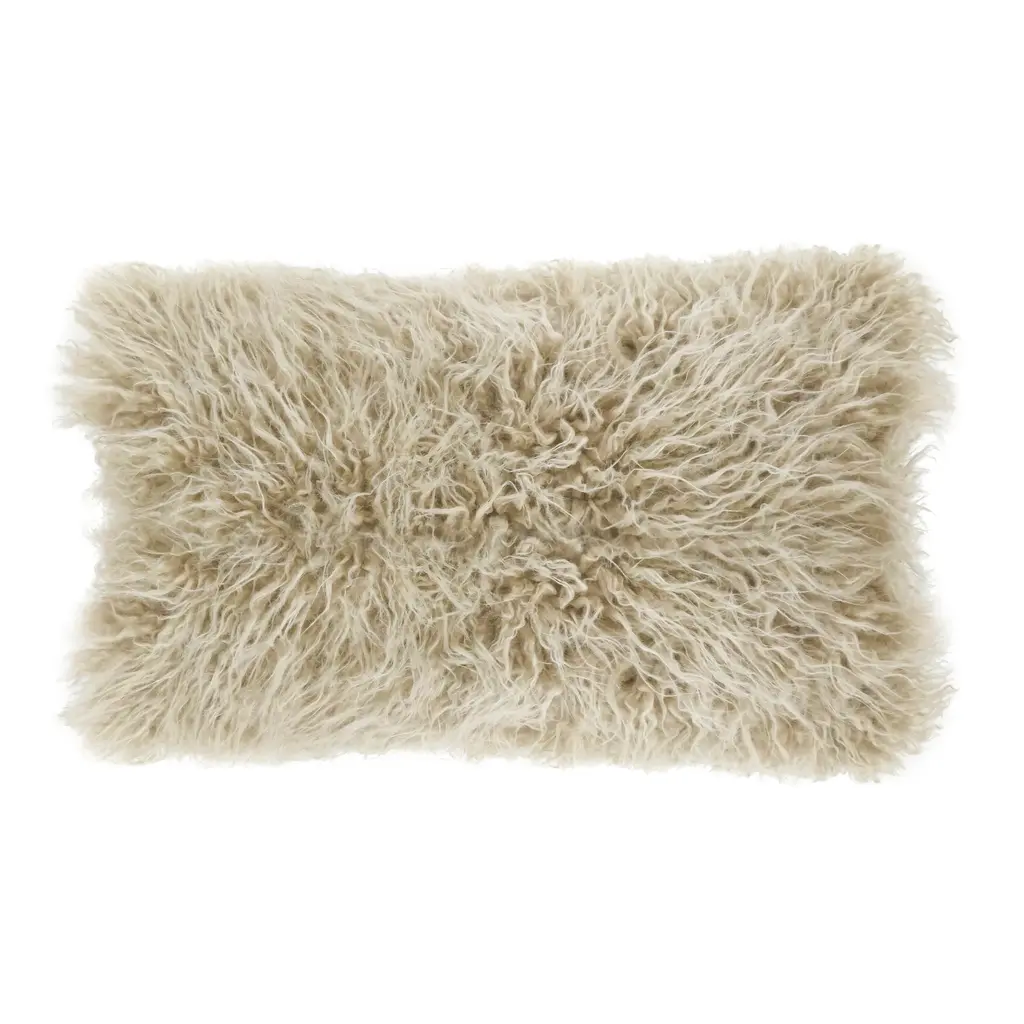 Enhance your home decor with the Modern Mongolian Lamb Fur Single Side Pillow. Designed with meticulous care and crafted from luxurious materials, this hand-made 12" x 24" pillow features a sleek, solid design and includes a feather-down insert for added comfort.