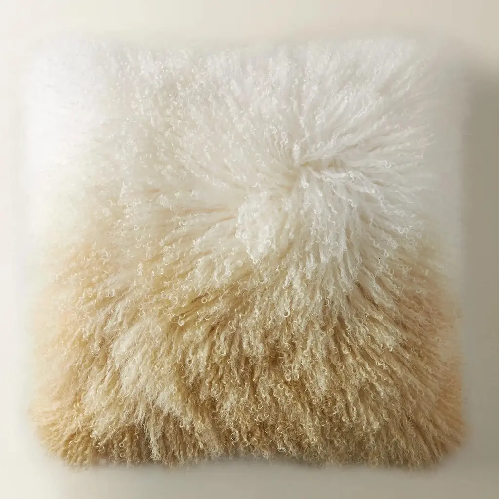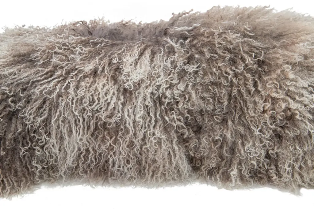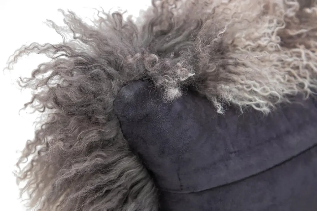 Gray Modern Mongolian Lamb Fur Single Side Pillow
