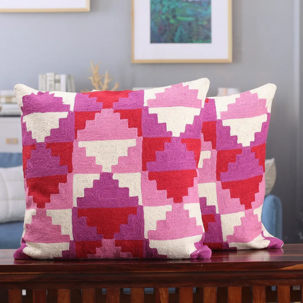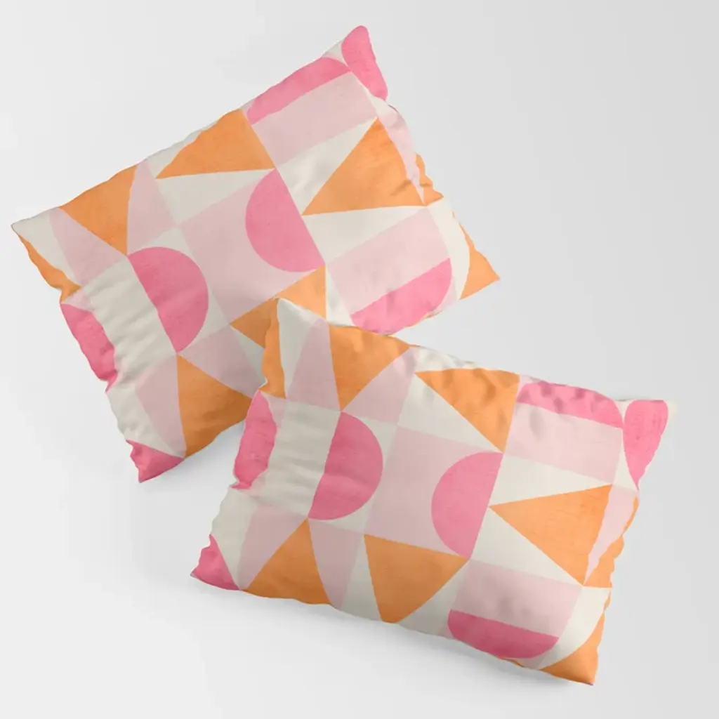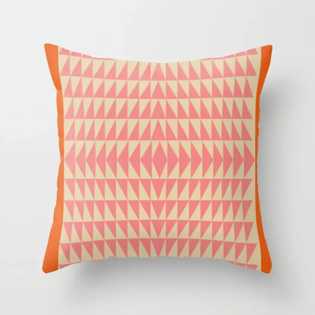 Greeko Simple Geometric Print Throw Pillow With Linen Texture, Red, 14"x20"