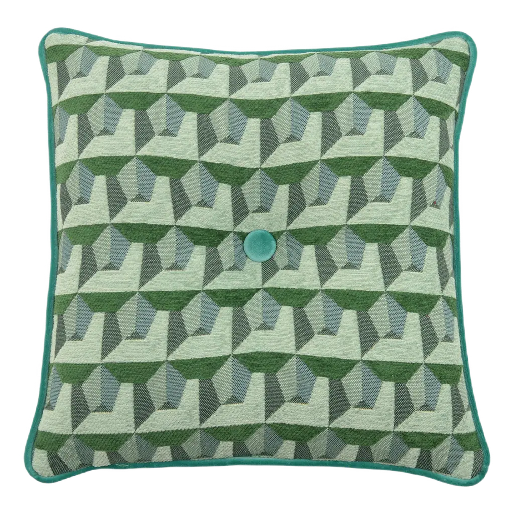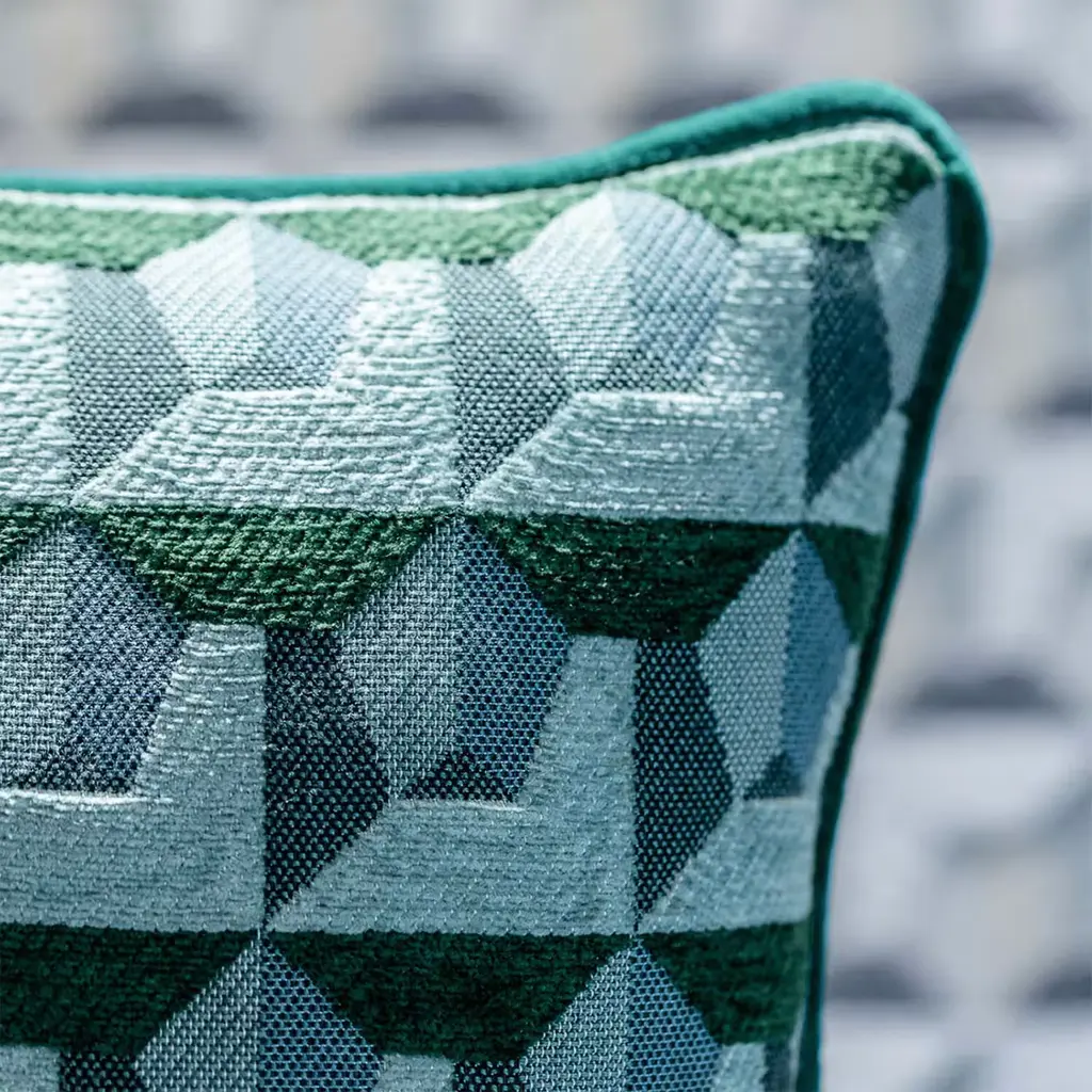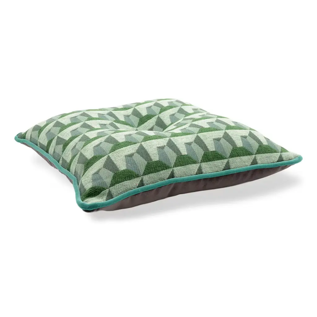 Green Carrè Cushion In Geometric Jacquard Fabric
