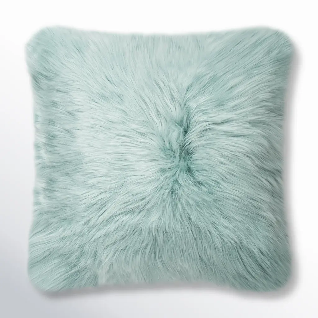 Green Fluffy Pillow Sheepskin - Eucalyptus 18x18"