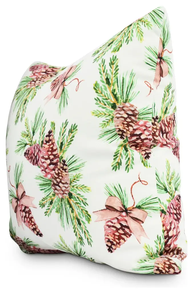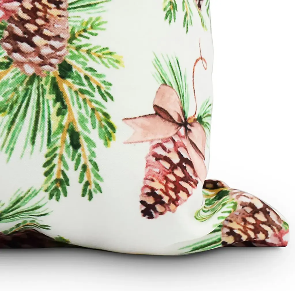 Greenery Off White Holiday Print Decorative Outdoor Throw Pillow, 20"