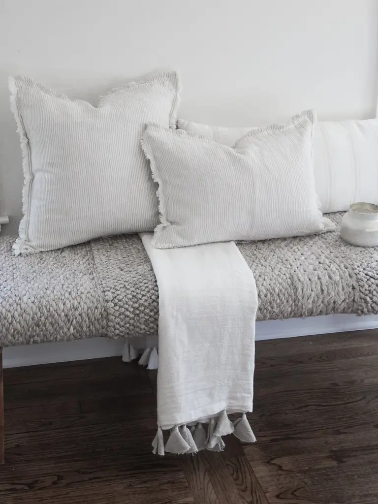 Grey Pinstripe Fringe So Soft Linen Pillow