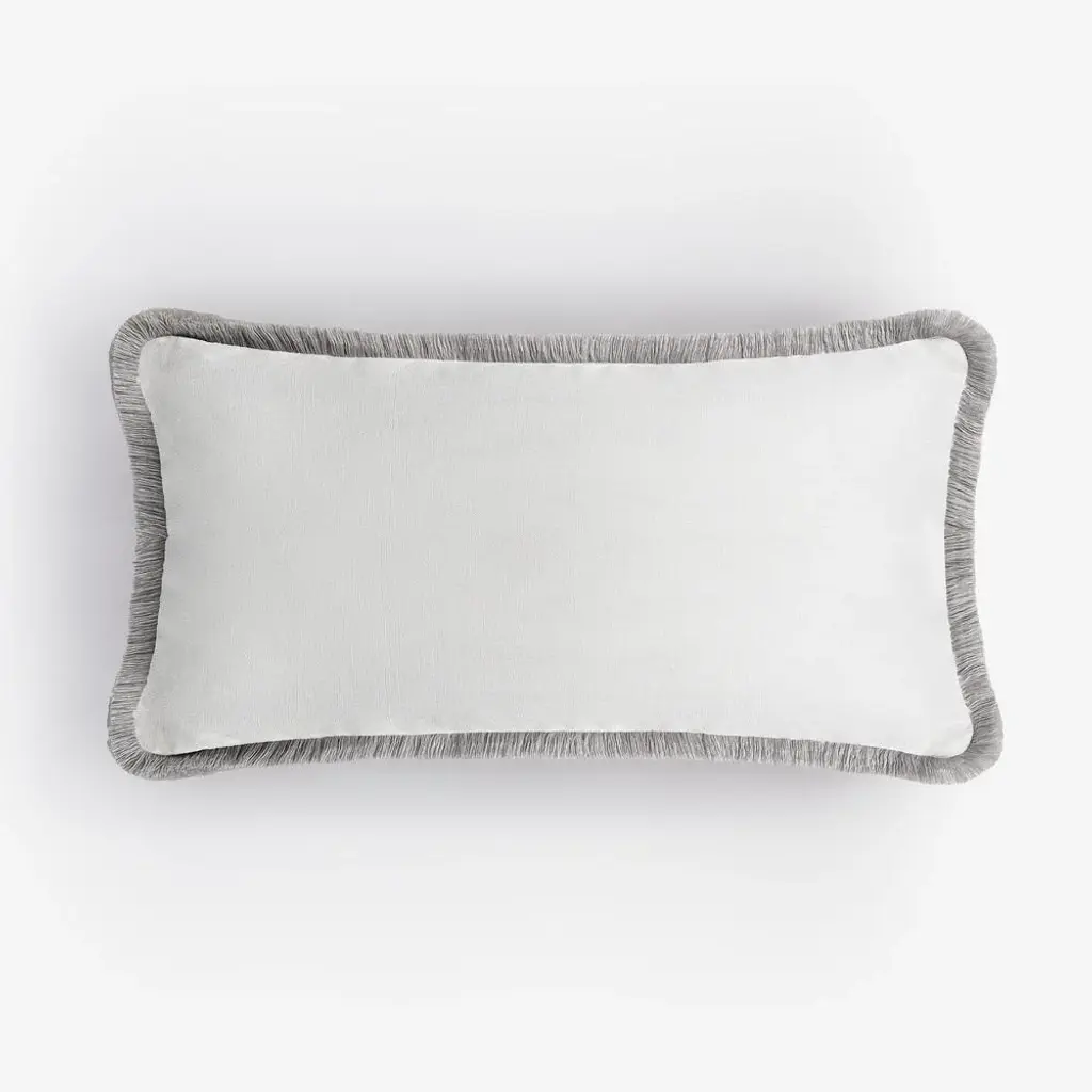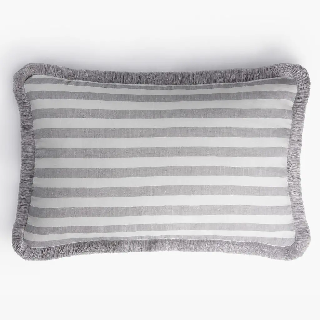 Grey With Grey Fringes Happy Linen Pillow By Lo Decor For Lorenza Briola