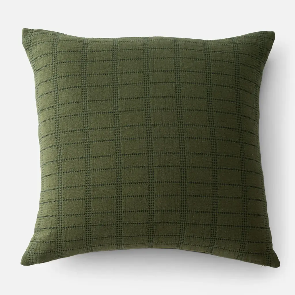 Timeless elegance meets casual comfort in this heirloom-quality pillow made from 100% cotton. Versatile and effortless, the Blue Grid Stitch Pillow is perfect for mixing and matching with existing pieces throughout the home. A classic stitch pattern lends a coveted vintage feel, while its matelassé weave adds a cozy weight and texture. Features a brass YKK zipper and a down-filled insert, or available as a single cover. Made in Portugal from a family-owned factory with generations of weaving experience.