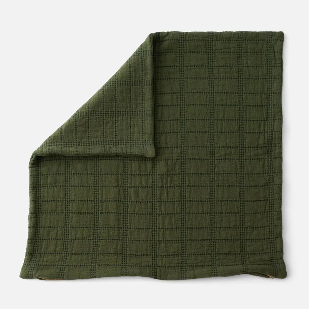 Timeless elegance meets casual comfort in this heirloom-quality pillow made from 100% cotton. Versatile and effortless, the Blue Grid Stitch Pillow is perfect for mixing and matching with existing pieces throughout the home. A classic stitch pattern lends a coveted vintage feel, while its matelassé weave adds a cozy weight and texture. Features a brass YKK zipper and a down-filled insert, or available as a single cover. Made in Portugal from a family-owned factory with generations of weaving experience.