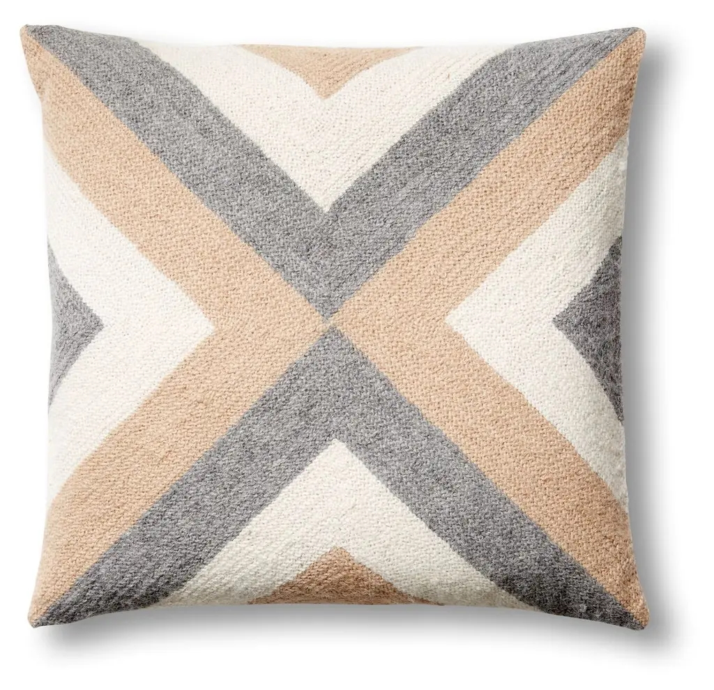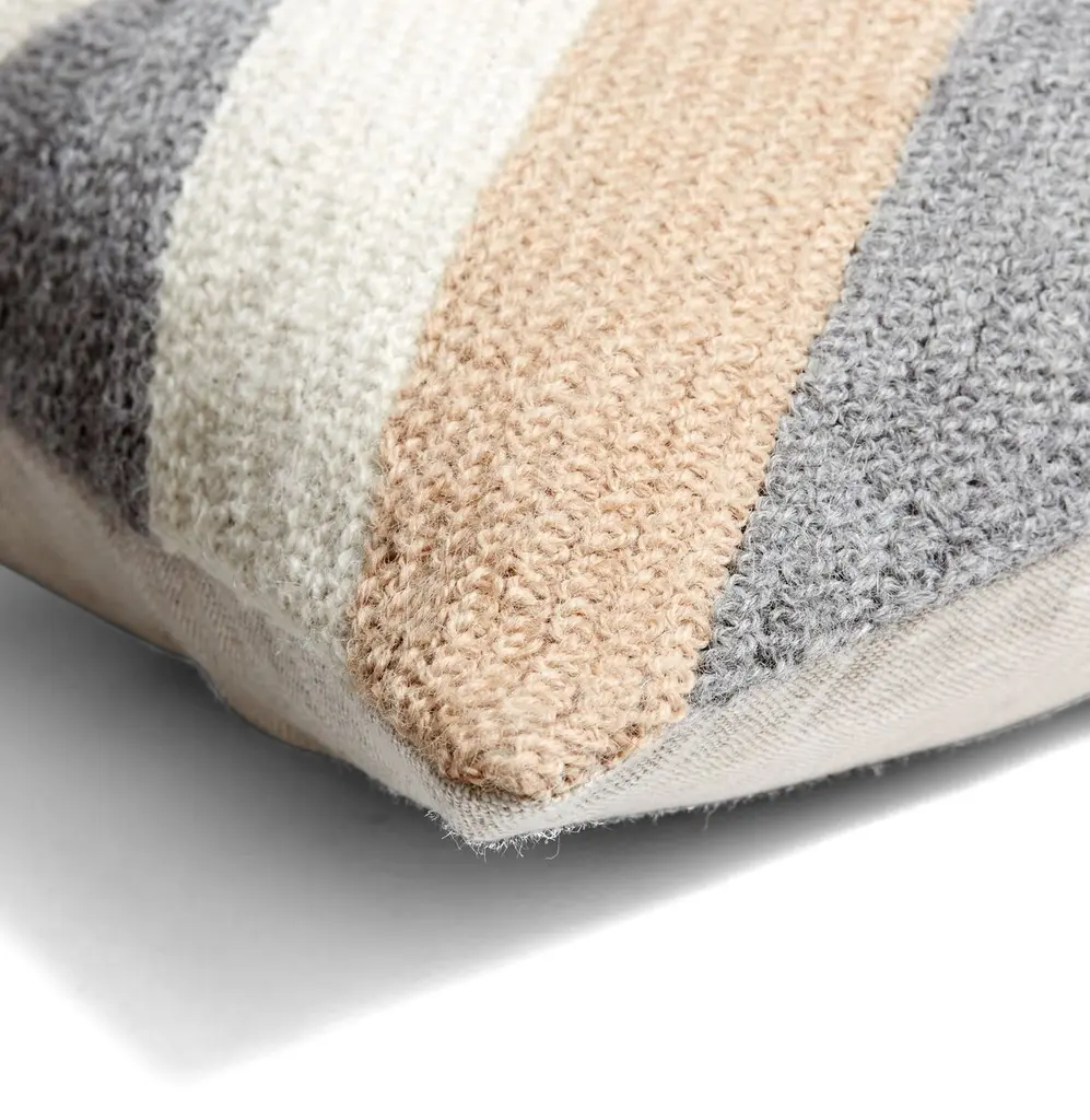 Inspired by the nautical flags of the sailboats docked in Grinda, an island in the Stockholm Archipelago, this linen-blend pillow is embroidered by hand with ultrasoft alpaca wool in a bold, graphic design. A feather-and-down insert ensures long-lasting comfort.
