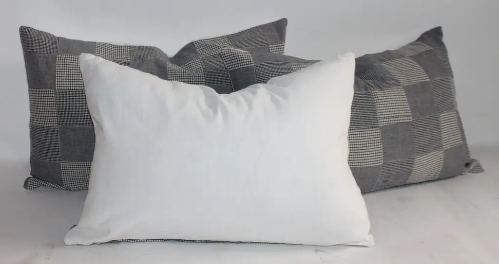 These patchwork pillows are made from a quilt top and homespun check fabric. Selling the collection as one group. The backings are white cotton linen.