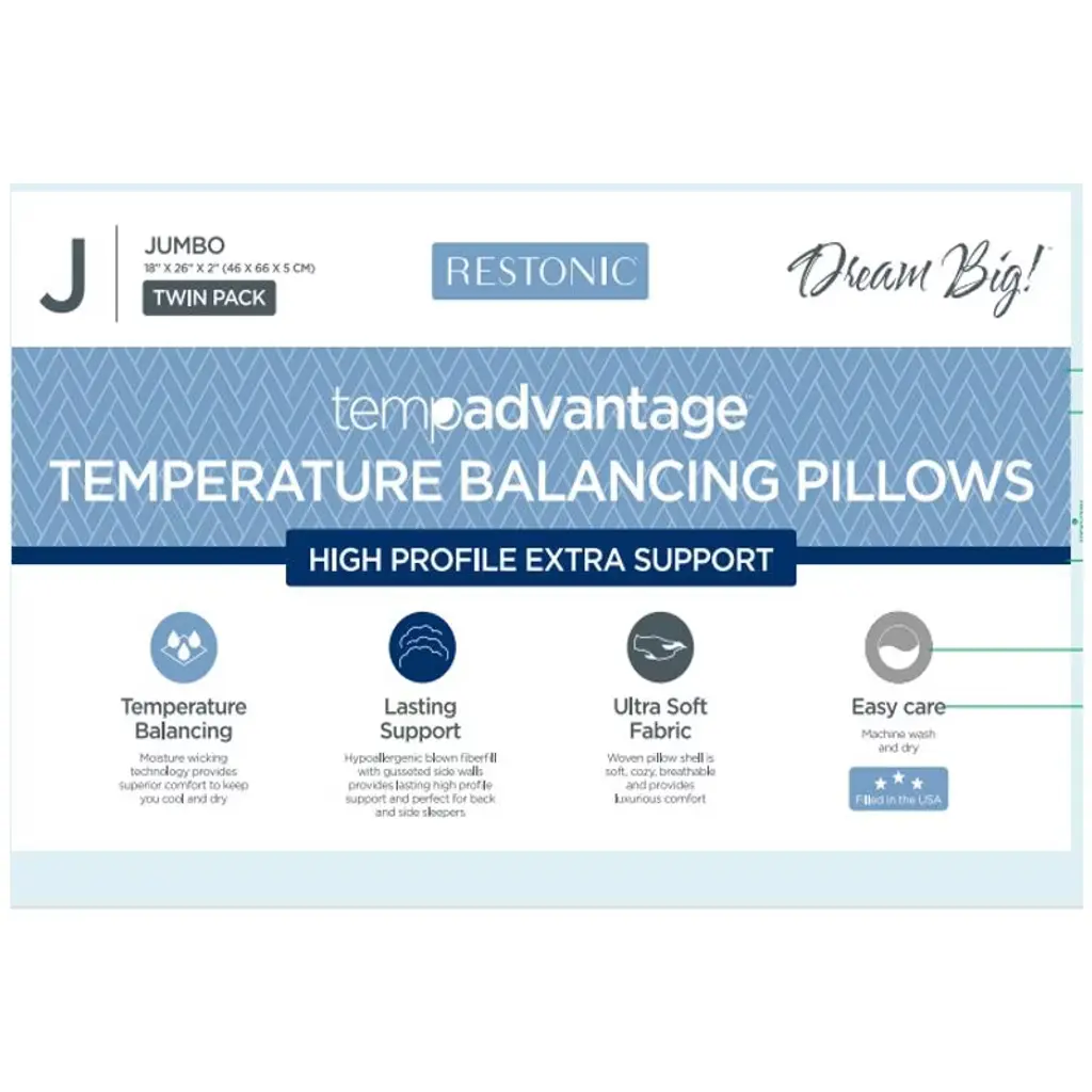 Elevate your sleep experience with the Gulches Dual Pillow Set! Thermoregulating technology adjusts to your body temperature for uninterrupted comfort all night long. Moisture-wicking + breathable microfiber fabric keeps you dry; 100% hypoallergenic polyester fiber filling (high loft) supports your head and neck. 2-inch reinforced side panels maintain pillow shape—perfect for sensitive sleepers.