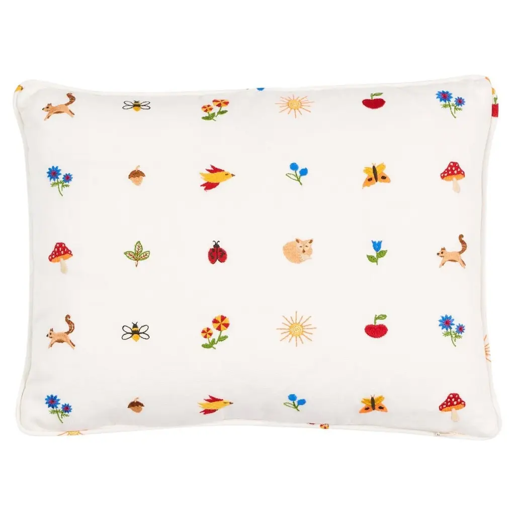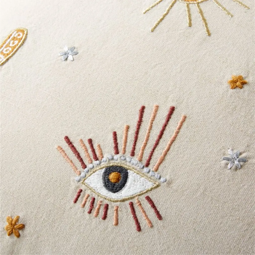 Our Gwen Embroidered Throw Pillow features motifs representing hope and good fortune, inspired by Jeremiah Brent's childhood and his own kids' imaginings. With a rich combination of intricate embroidery and metallic details against naturally flecked organic cotton, the pillow adds a dash of personality wherever it's placed.Our baby & kids collaboration with celebrated designer Jeremiah Brent is made to last: playfully sophisticated pieces designed for growing up.
