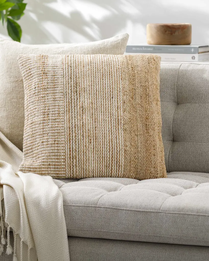 Over the moon for this earthy colorblocking pattern. Durable and water resistant for outdoor use. Recycled fill keeps plastic out of waste stream.