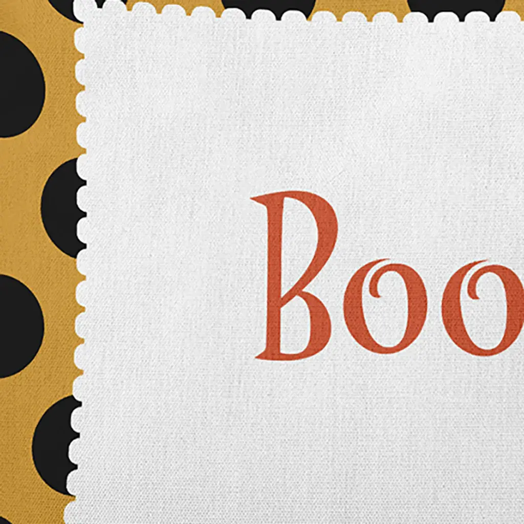 Create a festive and fun atmosphere in your home this Halloween season with our Halloween Boo Dots Pillow from the Witches Brew Collection. This indoor/outdoor pillow will add fun and style to your porch, deck or patio! This decorative pillow is printed on both sides and crafted with a soft, durable polyester exterior, and filled with down alternative for a crisp look and a comfortable sitting experience. The fabric is resistant to weather, mold, and mildew so you can accentuate your indoor or outdoor decor. It is sewn closed with a knife edge and can be easily spot cleaned or dry cleaned. The quirky designs in this collection are the perfect way to enhance your fall decor and to bring a smile to all who encounter them.
