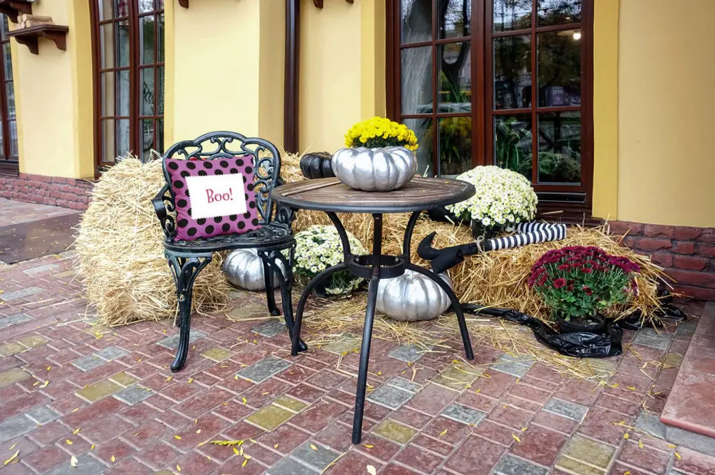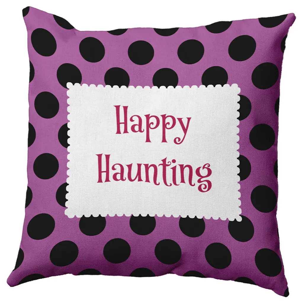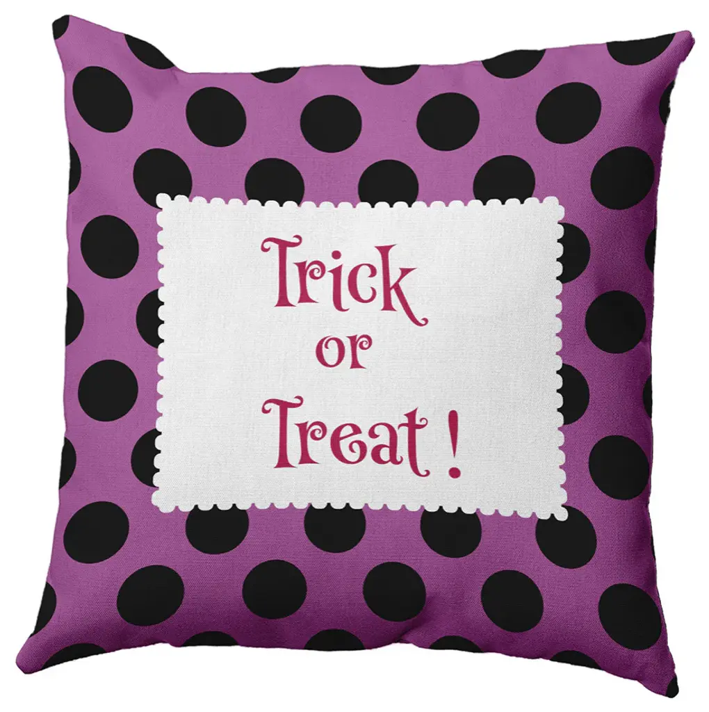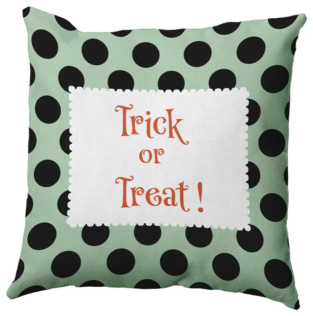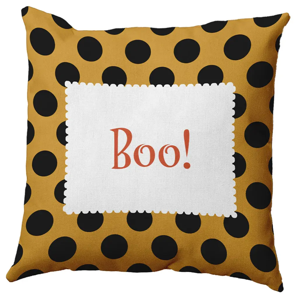 Create a festive and fun atmosphere in your home this Halloween season with our Halloween Boo Dots Pillow from the Witches Brew Collection. This indoor/outdoor pillow will add fun and style to your porch, deck or patio! This decorative pillow is printed on both sides and crafted with a soft, durable polyester exterior, and filled with down alternative for a crisp look and a comfortable sitting experience. The fabric is resistant to weather, mold, and mildew so you can accentuate your indoor or outdoor decor. It is sewn closed with a knife edge and can be easily spot cleaned or dry cleaned. The quirky designs in this collection are the perfect way to enhance your fall decor and to bring a smile to all who encounter them.